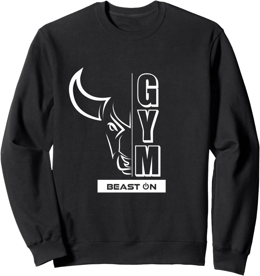 Büffel Kopf | Beast ON Gym | GYM Motivation Fitness Sprüche Sweatshirt
