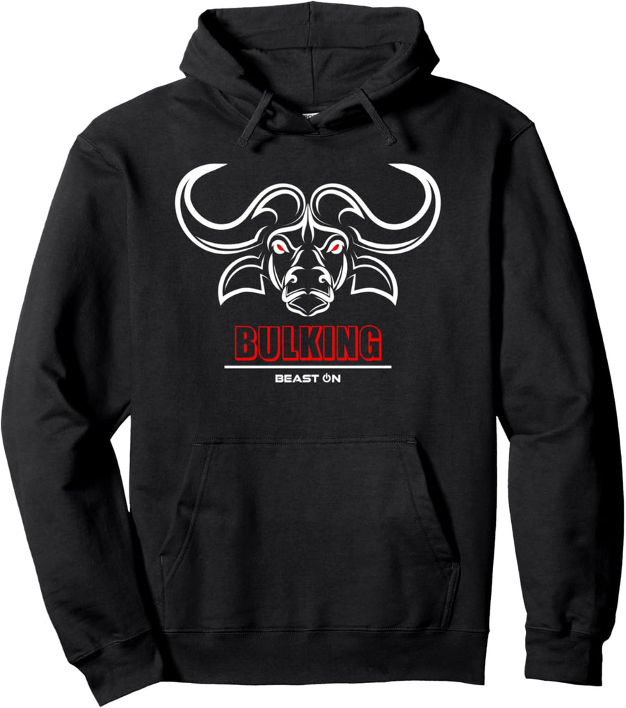 Bulking Bulle Kopf Rot Rücken Motiv Gym Workout Fitness Pullover Hoodie