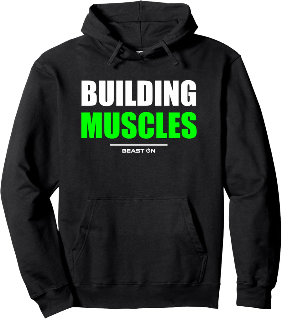 Building Muscles Gym Fitness Workout Bodybuilding Grün Schrift Pullover Hoodie