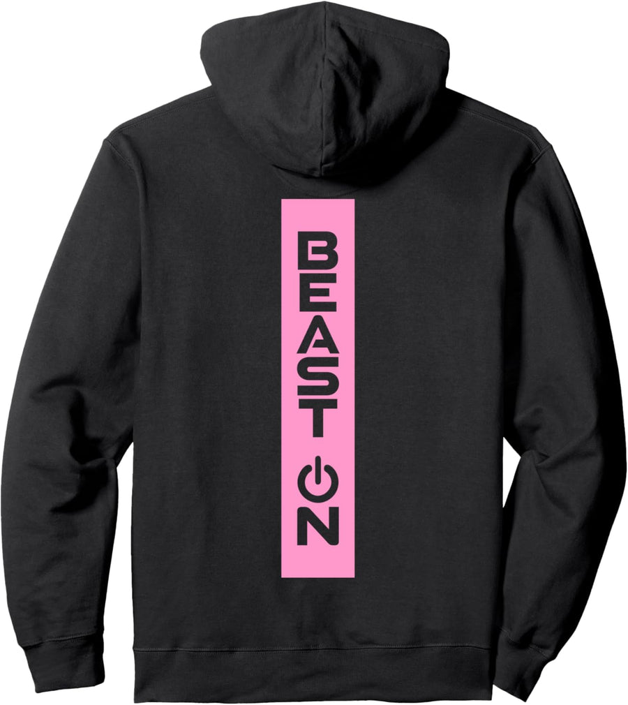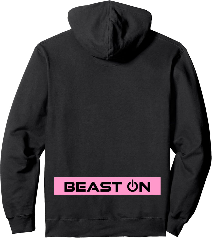 Beast ON Rücken Motiv rosa Schrift Gym Fitness Motivation Pullover Hoodie