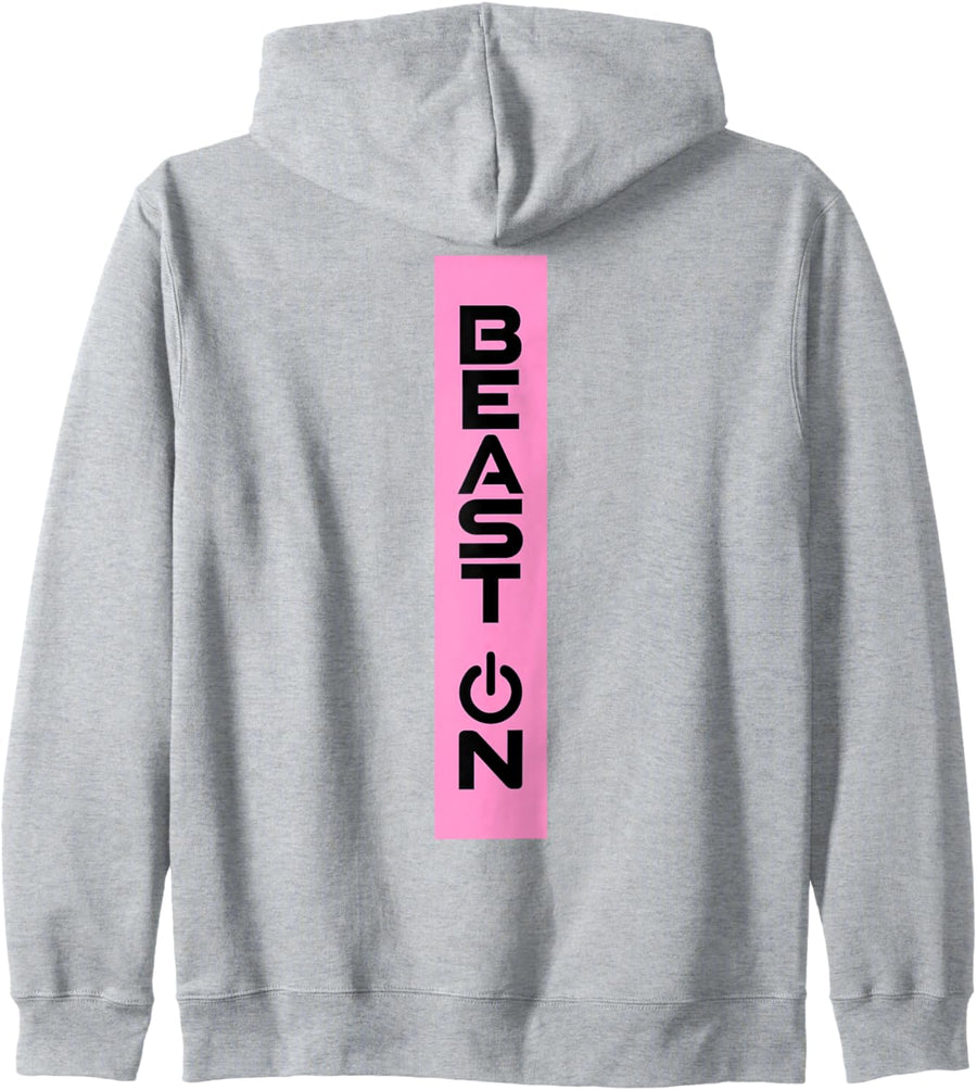 Beast ON Rücken Motiv Fitness Gym Motivation rosa Farbe Kapuzenjacke