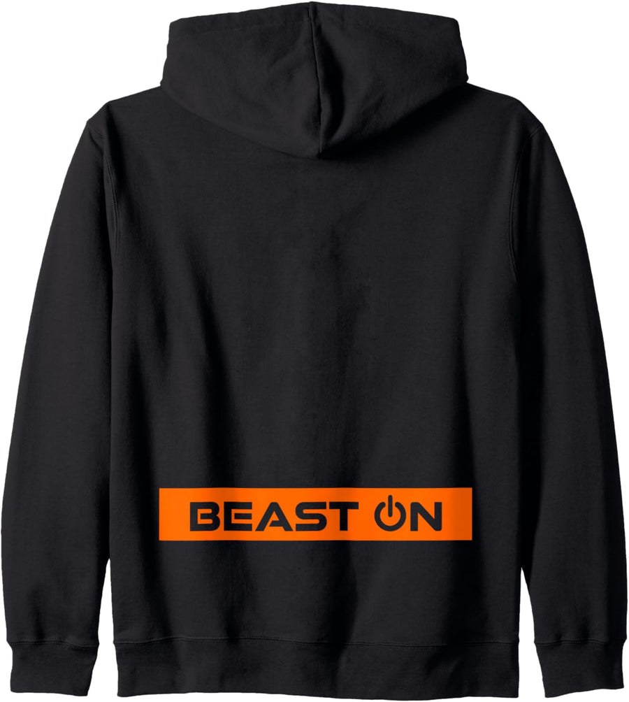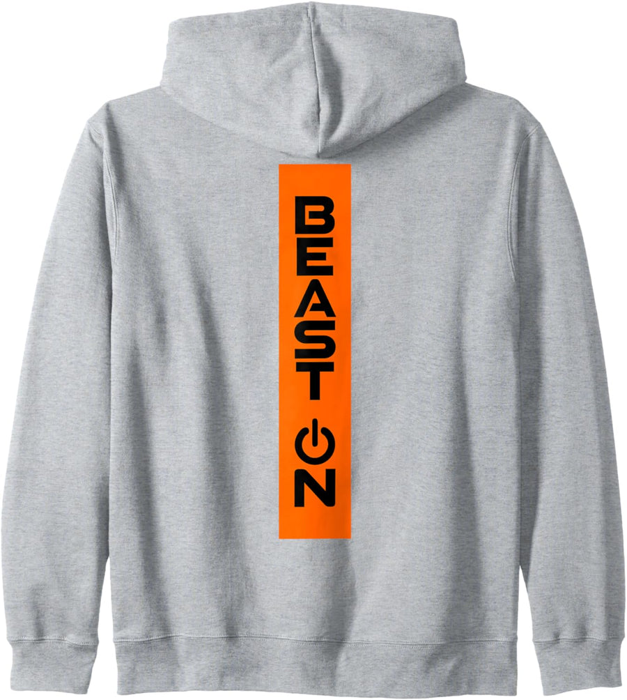 Beast ON Rücken Motiv orange Farbe Fitness Gym Motivation Kapuzenjacke
