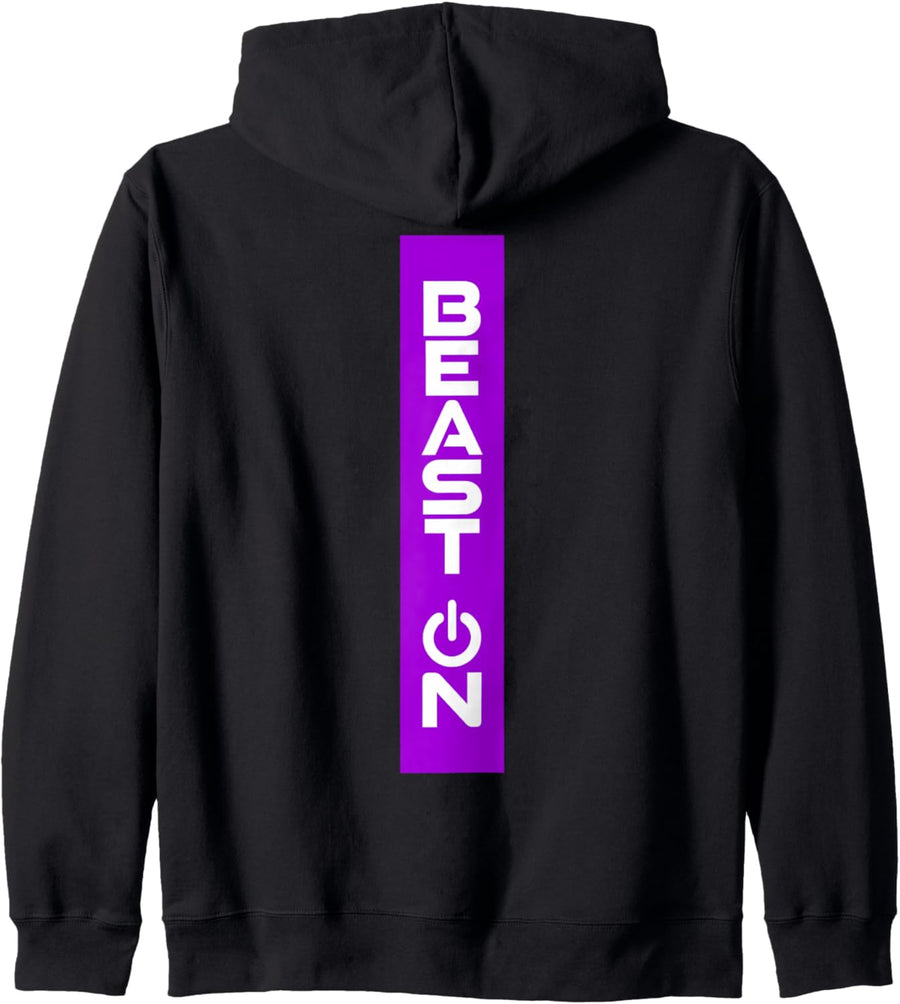 Beast ON Rücken Motiv lila Farbe Fitness Gym Motivation Kapuzenjacke