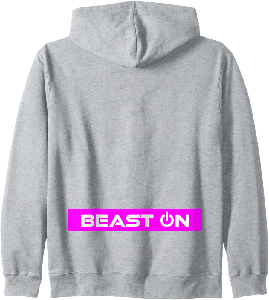 Beast ON Rücken Motiv hell lila Farbe Fitness Gym Motivation Kapuzenjacke