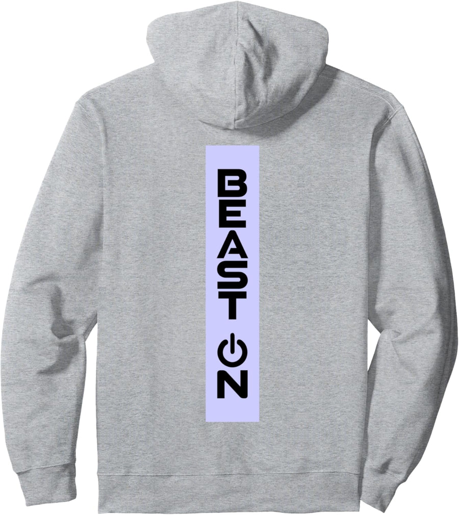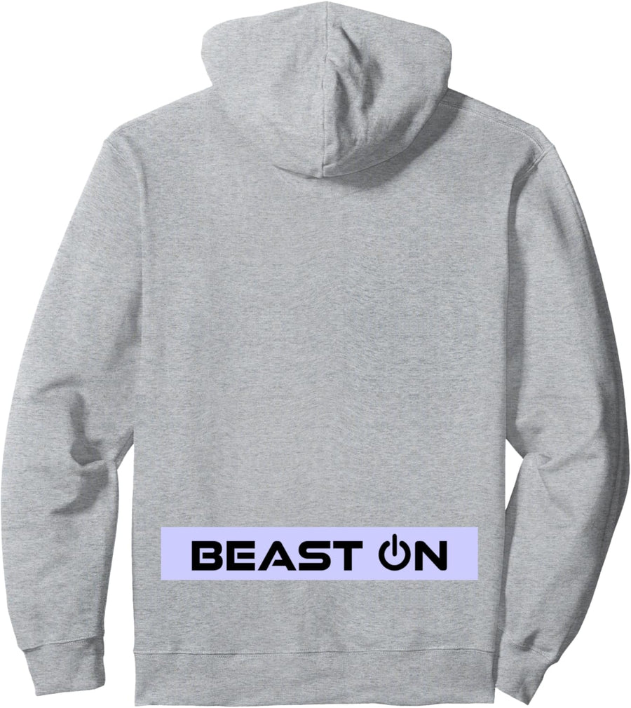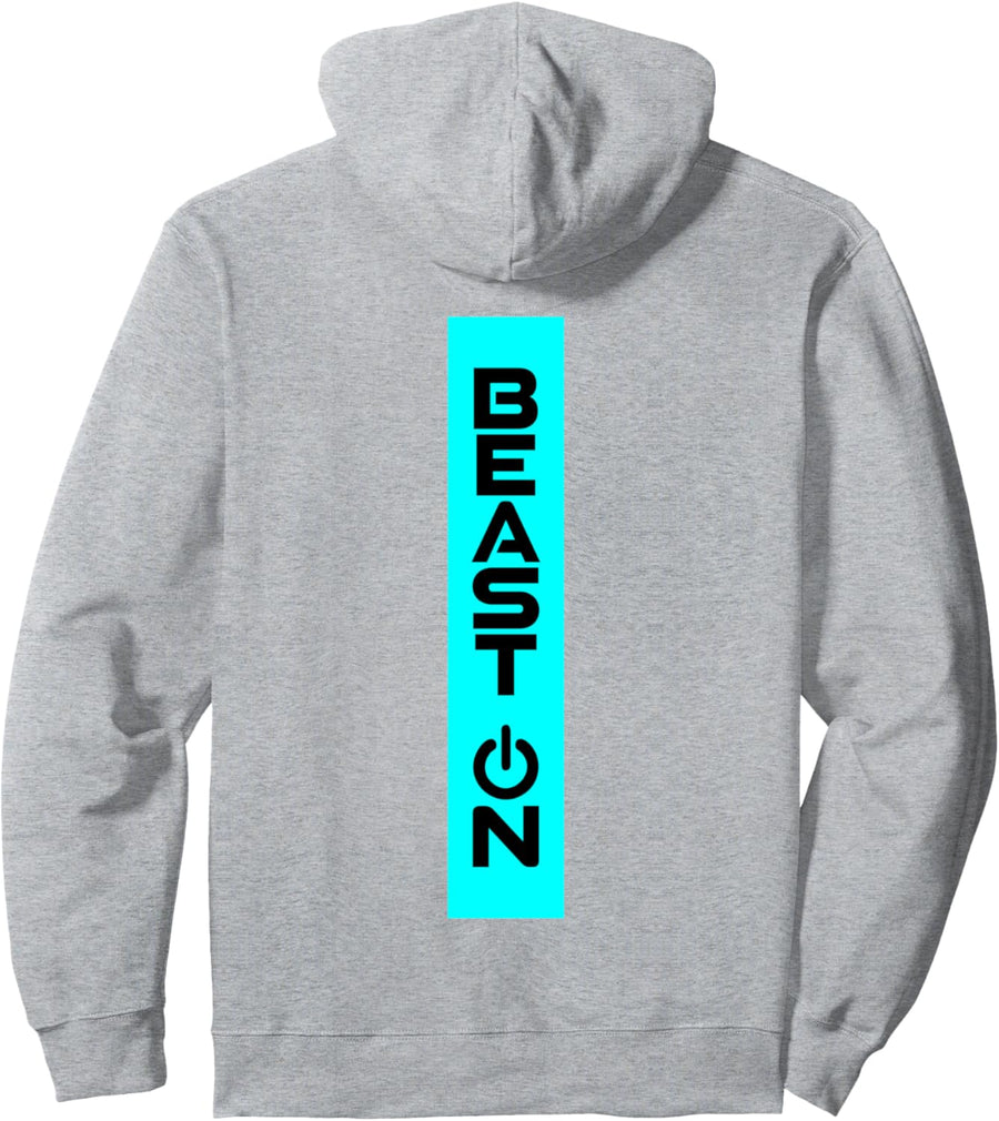 Beast ON Rücken Motiv hellblaue Farbe Fitness Gym Motivation Pullover Hoodie