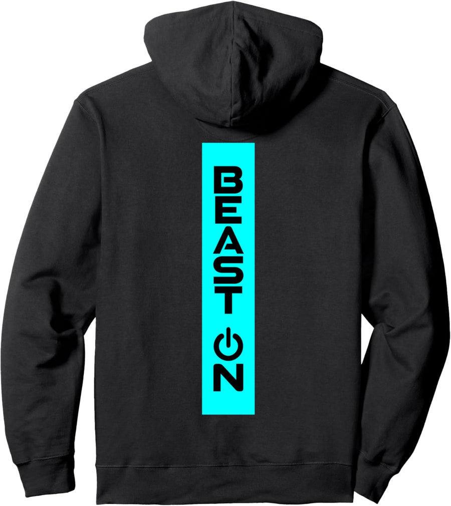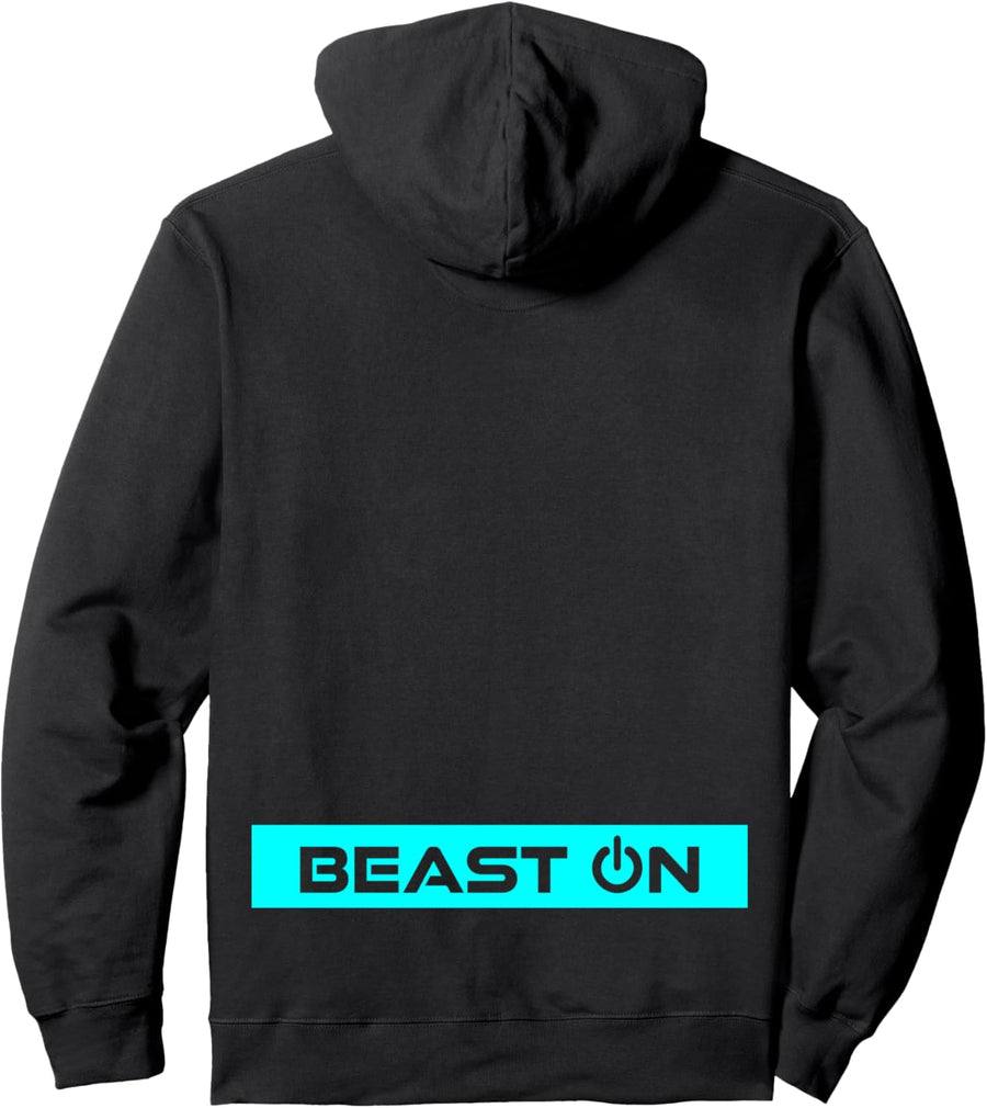 Beast ON Rücken Motiv hellblaue Farbe Fitness Gym Motivation Pullover Hoodie