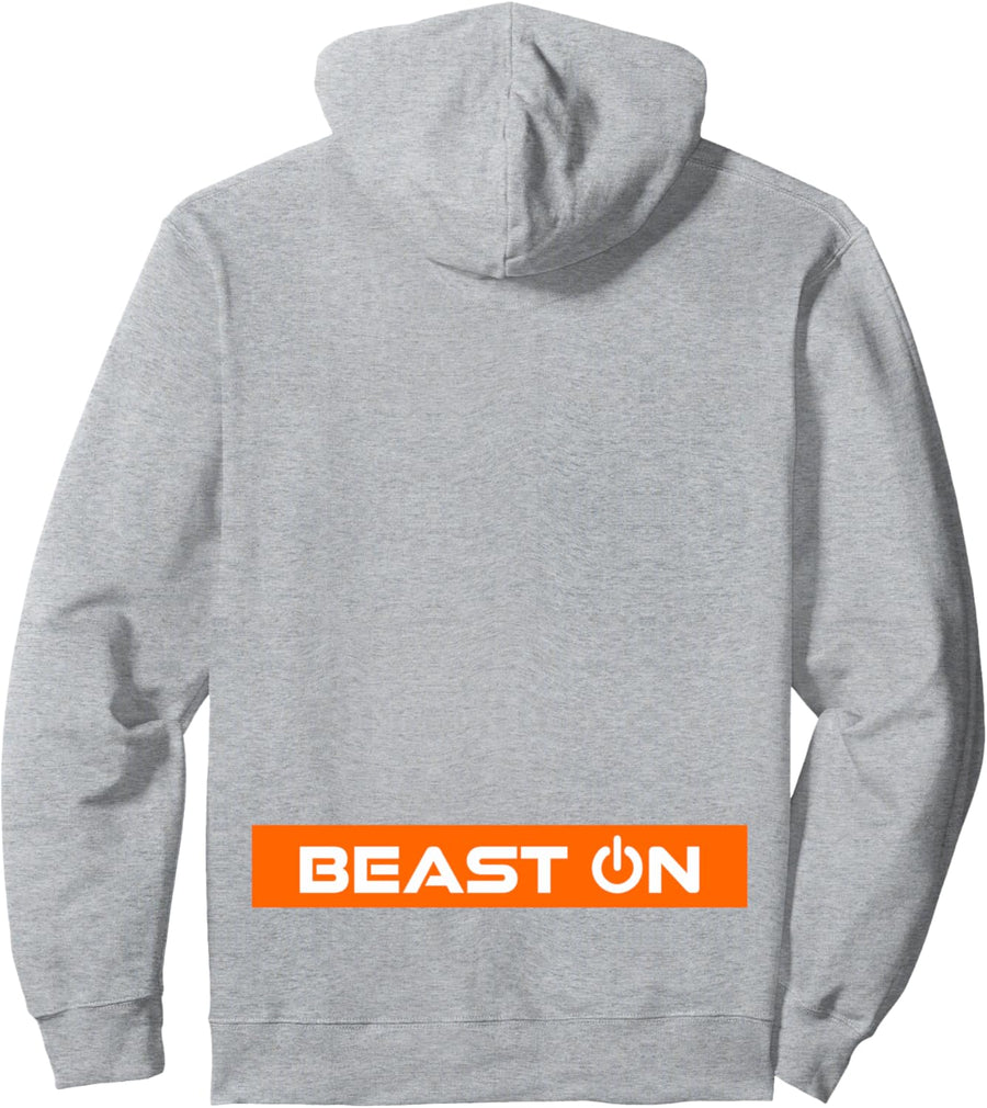 Beast ON Rücken Motiv graue Farbe Fitness Gym Motivation Pullover Hoodie