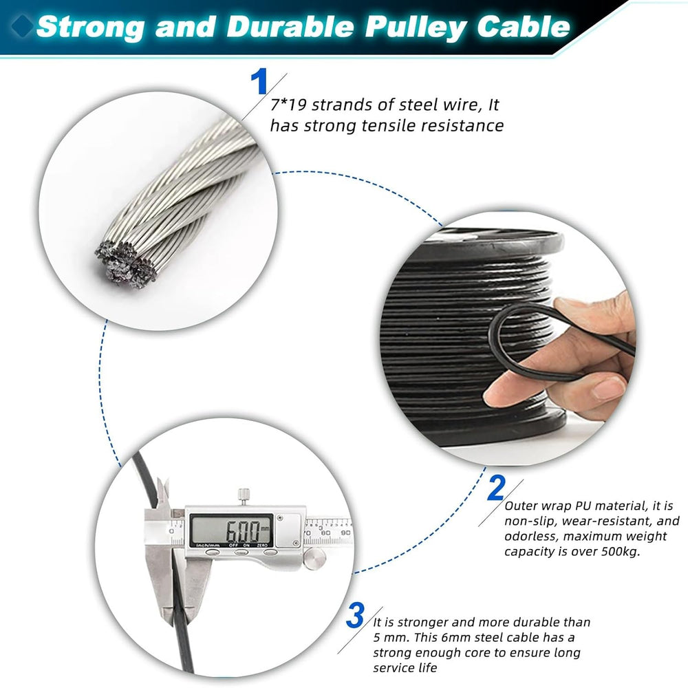 BBYPP 15m/ 20m/ 25m Gym Kabel Draht, 6mm Stahlseil PU Ummantelt Fitnessgerät für Home Gym Riemensche