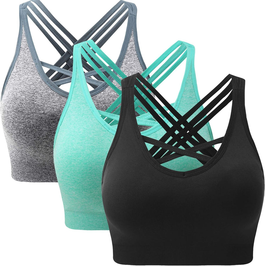ANGOOL Damen Sport BH ohne Bügel Gepolstert Yoga Bra Kreuz Rücken Sport Bustier für Jogging Fitness