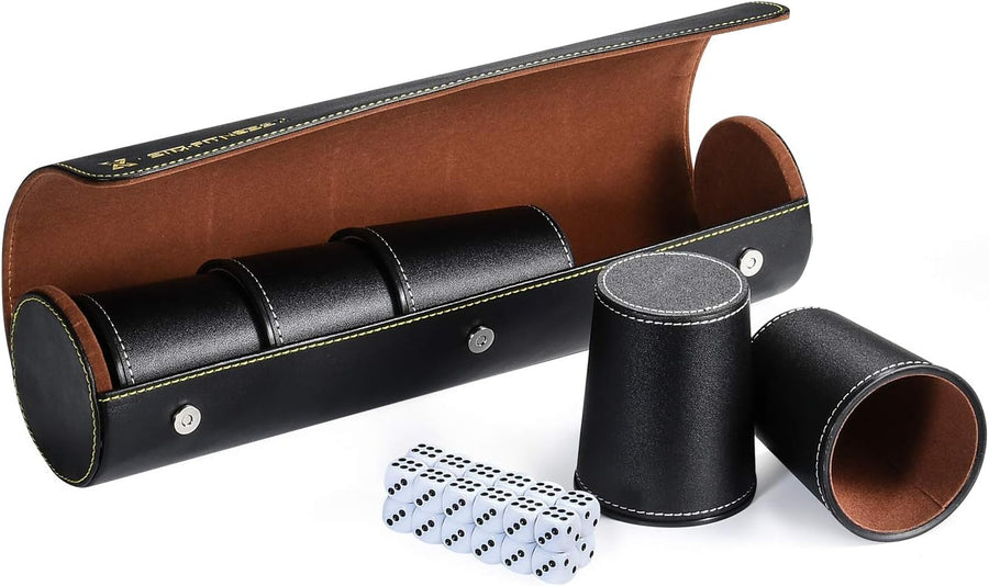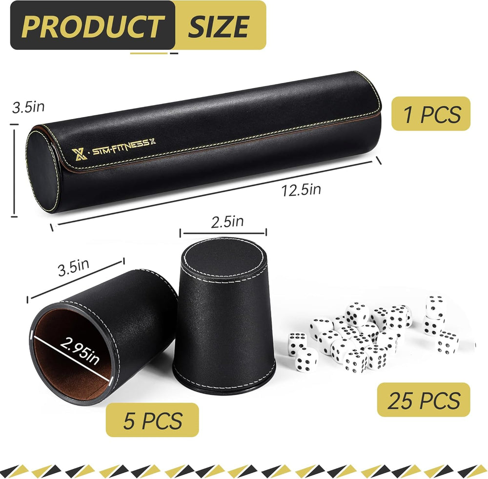 X SIM FITNESSX Partyspiele PU Leder Würfelbecher Set, 5 Würfel mit Becher + 25 Punktwürfeln +Exklusi