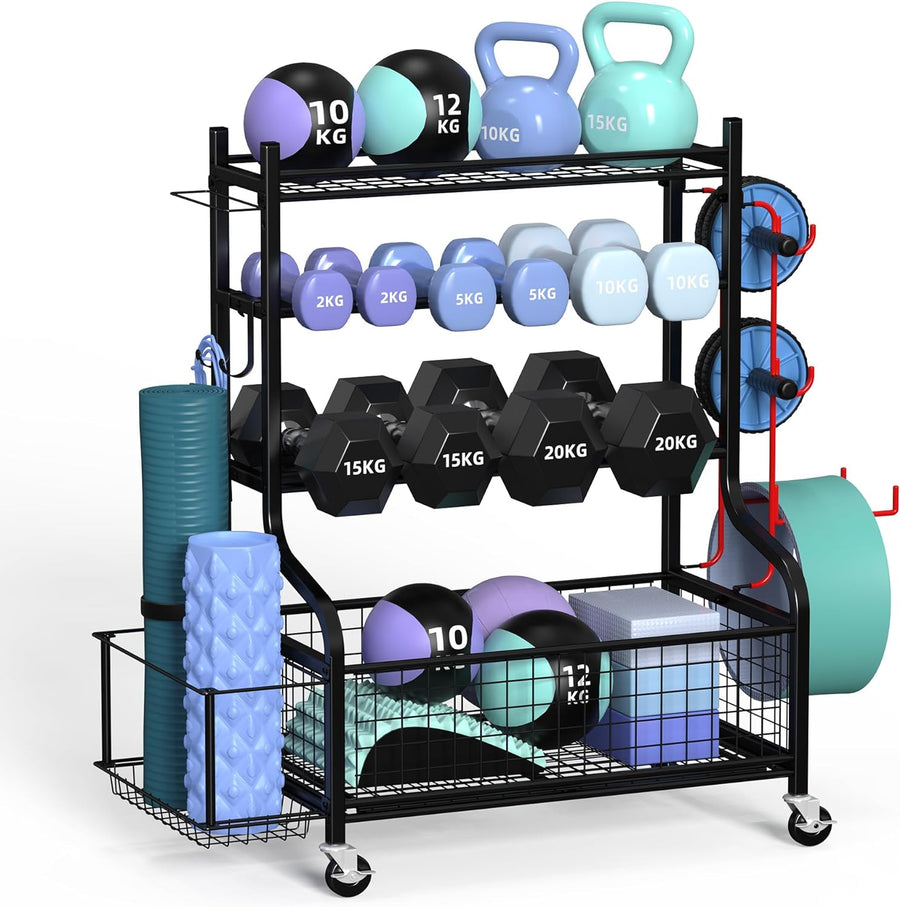 Hantelablage – ZACHVO Yogamatte Hantelständer – Hantelständer für Heim-Fitnessstudio mit 4 Rollen un