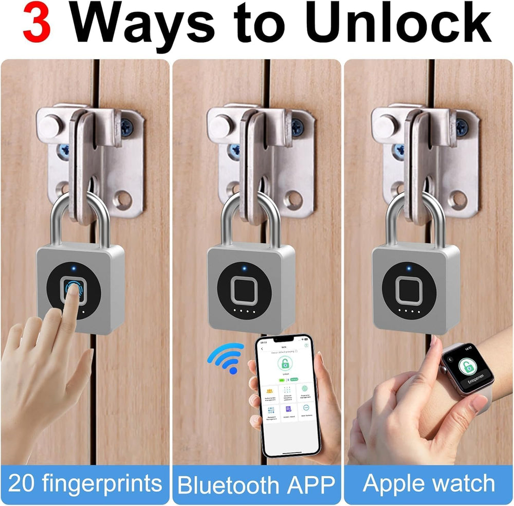 eLinkSmart Vorhängeschloss für Fitnessstudio, Entsperren per Fingerabdruck oder mobiler App, mehrben