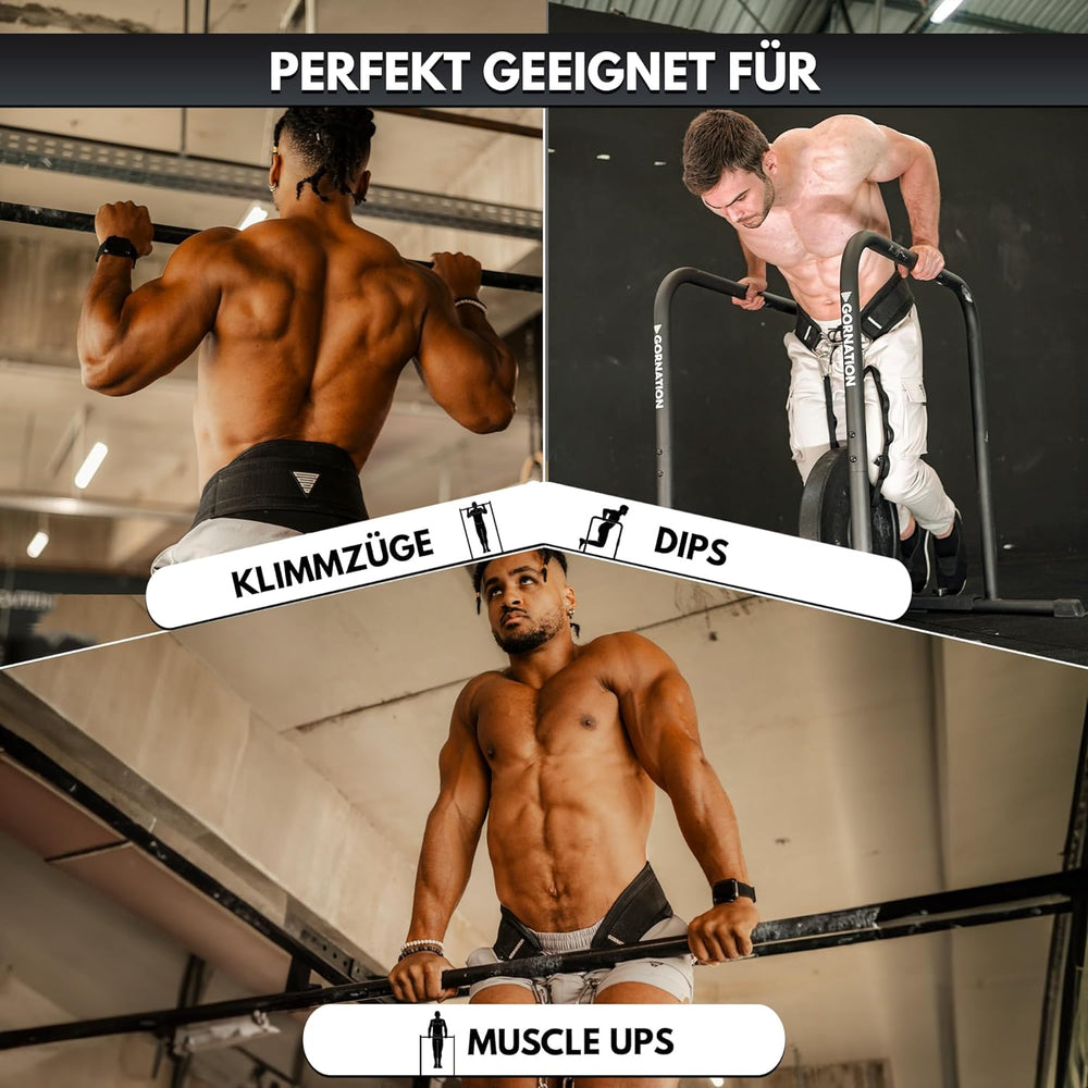 GORNATION® Dip Gürtel bis 1000kg belastbar | Befestigung von Zusatzgewicht mit Kette für Fitness, Ca