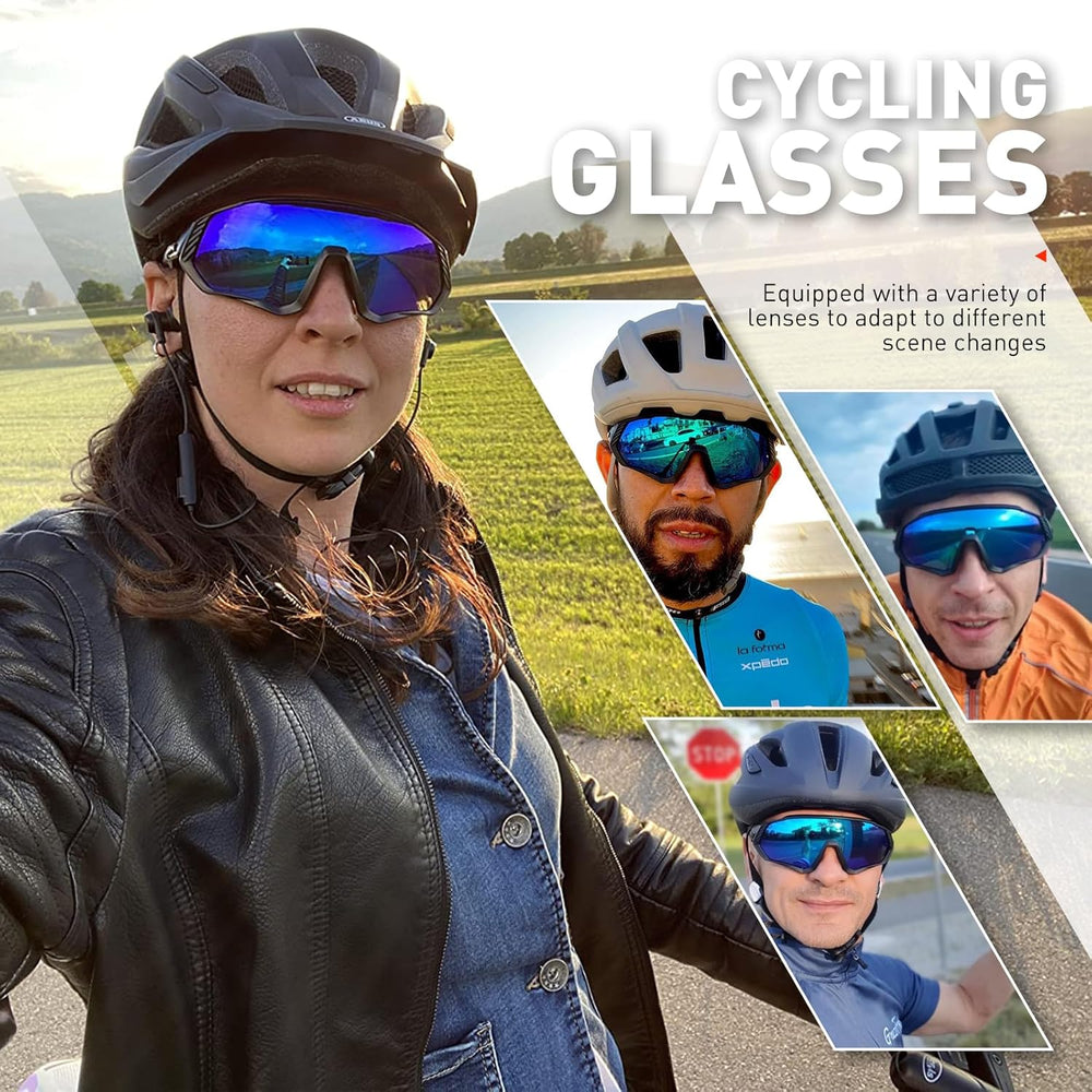 KAPVOE Polarisations-Fahrradbrillen,5 austauschbare Gläser,Unisex-Sportsonnenbrillen für Männer und