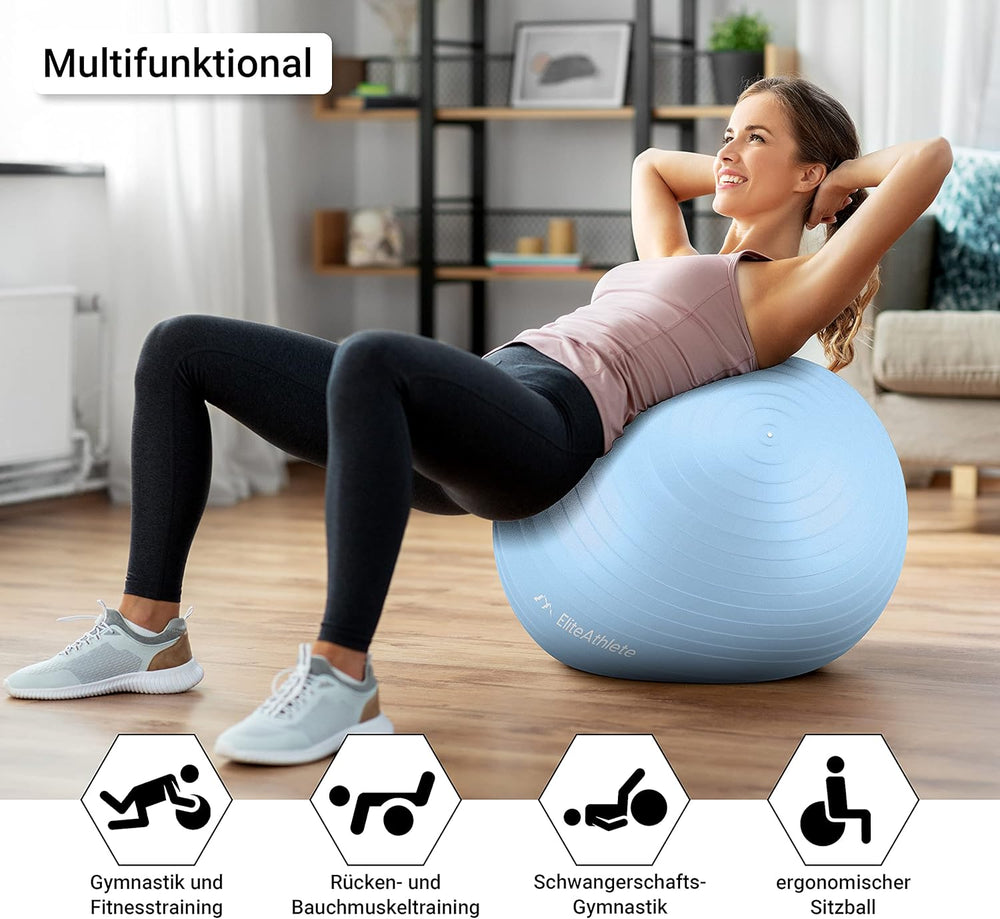 EliteAthlete Gymnastikball Sitzball Büro ergonomisch mit Anti Burst System - Fitness Pilates Schwang