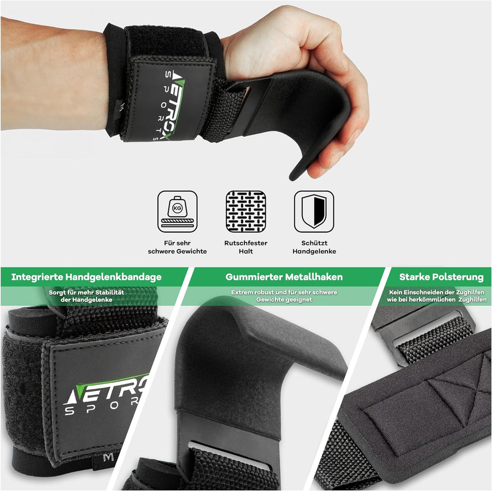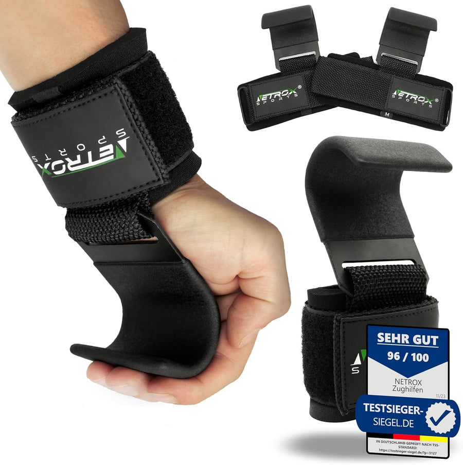 NetroxSports® – Zughaken Handgelenk für Bodybuilding, Gewichtheben, Krafttraining & Fitness – Zughil