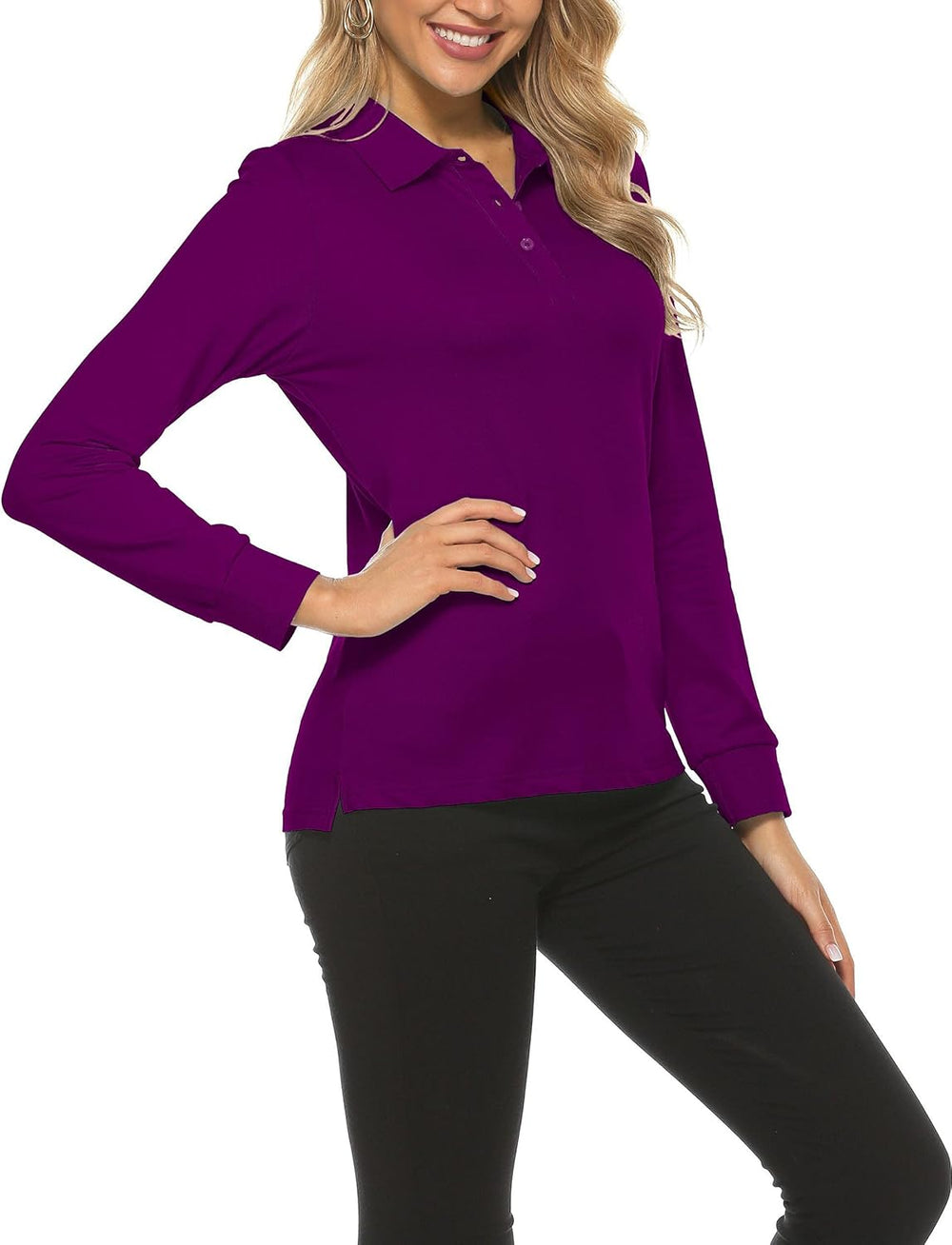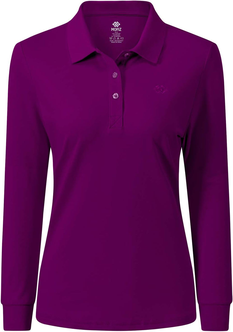 AjezMax Damen Poloshirt Baumwolle Golf Wintershirt Langarm Oberteile Sports Training Polo mit Kragen
