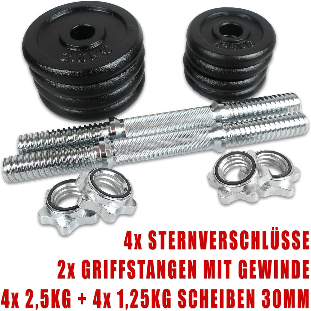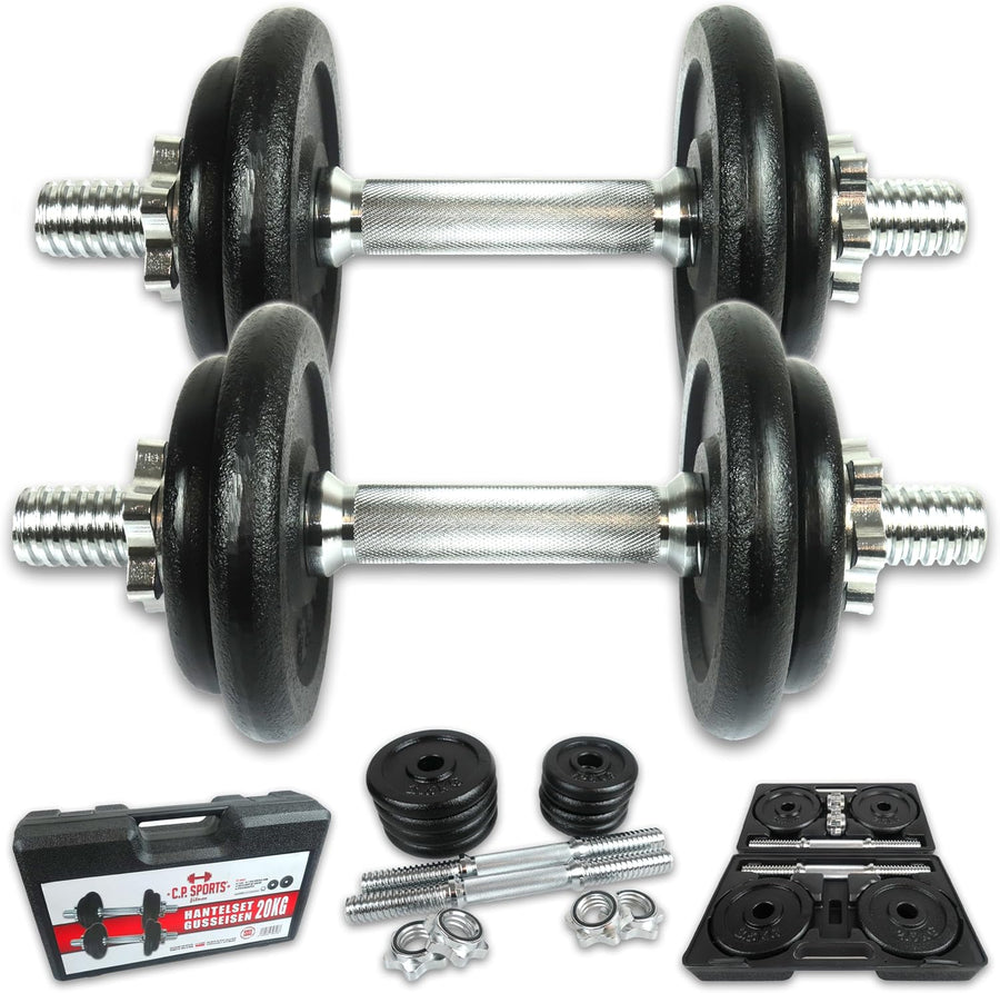 C.P.Sports Gusseisen Kurzhantel oder Langhantel Set 20KG / 25KG im Koffer | Hanteln Paar oder Hantel