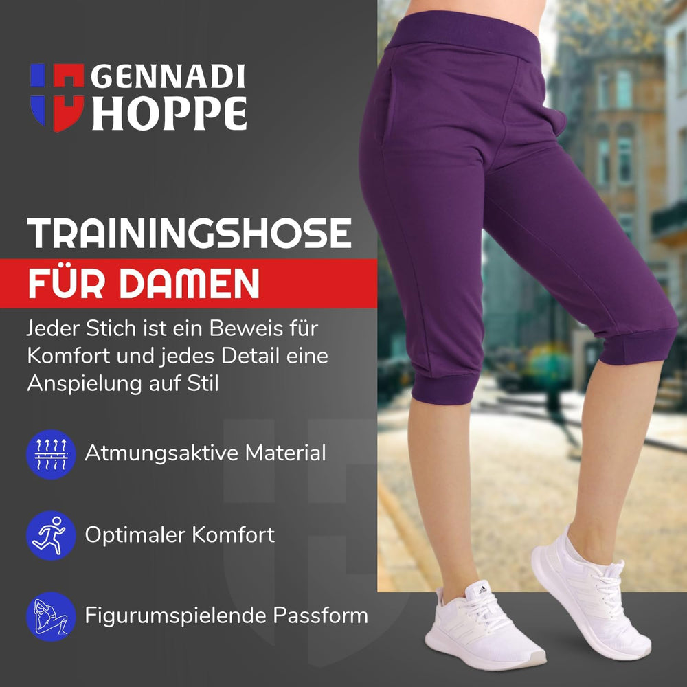 Gennadi Hoppe Damen 3/4 Trainingshose Sporthose Kurze Hose Sport Fitness Jogginghose Shorts Barmuda