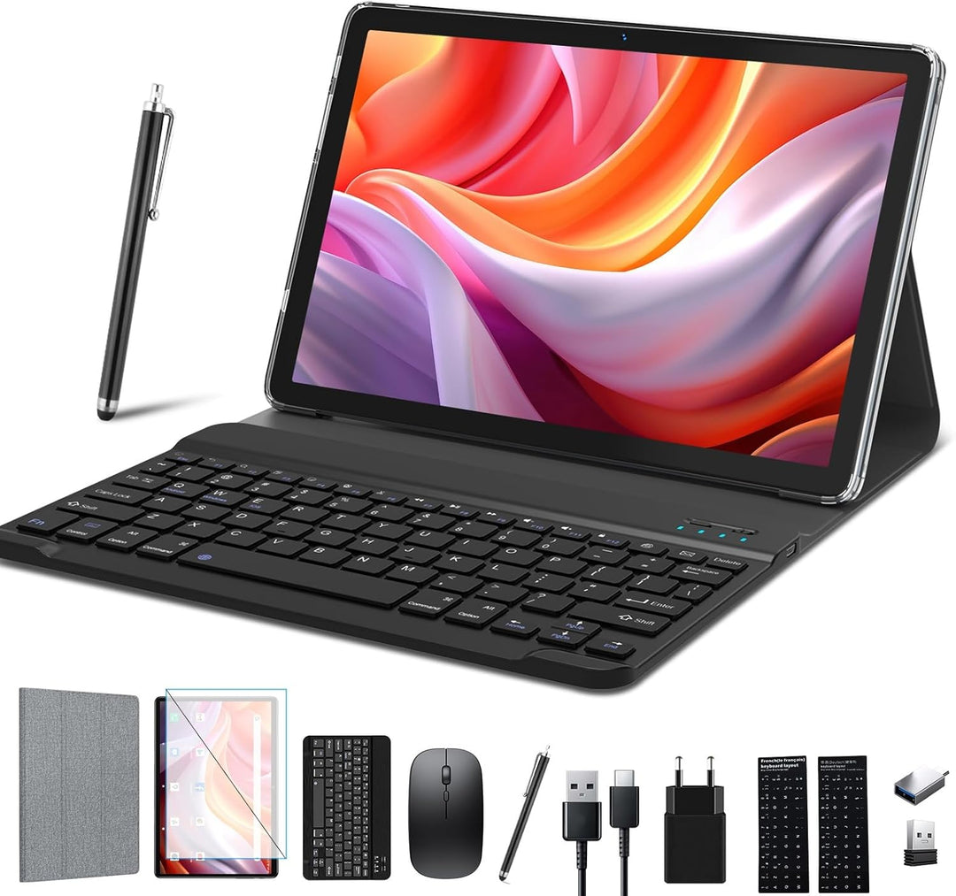 - 🎁2-in-1-Tablet + Starker Kundendienst: Das Tablet wird mit 1* Tastatur, 1* Maus, 1* kapazitivem Stift, 1* Hülle, 1* Displayschutzfolie, 1* Type-C-Ladegerät usw. geliefert, was Ihnen eine bessere Erfahrung und Schutz bietet. Wir bieten auch 24 Monate