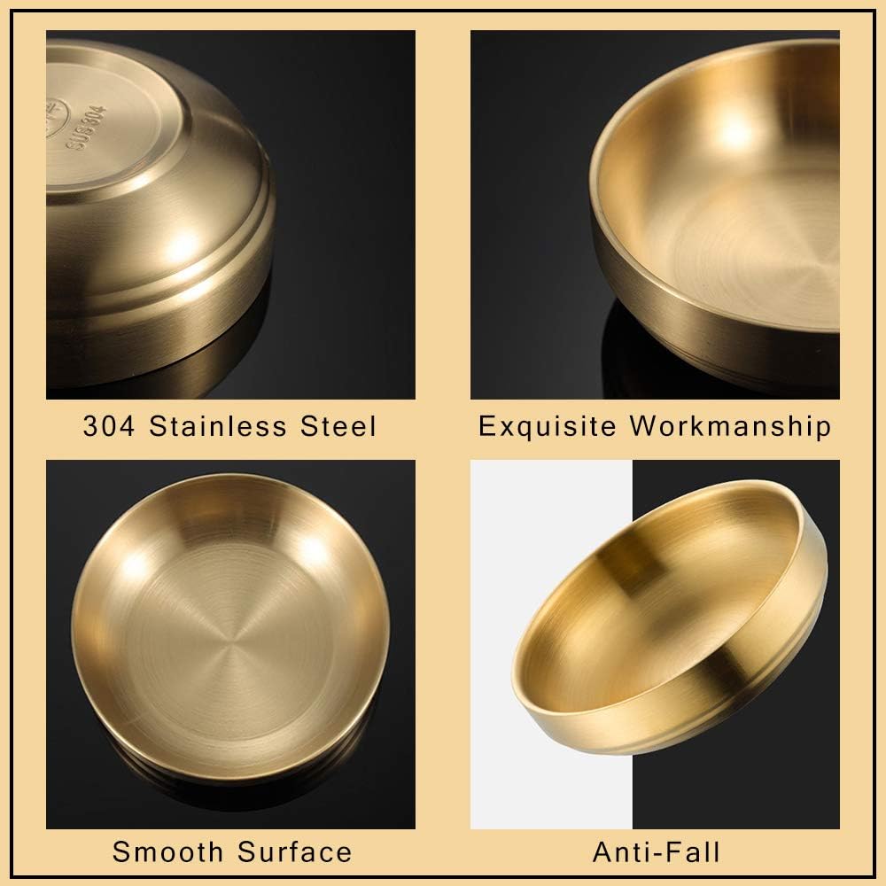 - 【Stilvolles Design】 Entworfen im Doppeldeck- und gebürsteten Prozess, die goldenen Metall-Auflaufförmchen werden mehr Textur. Runde Form macht es gut in der Handfläche und leicht zu greifen. Flacher Boden für stabilere Platzierung. Glatte