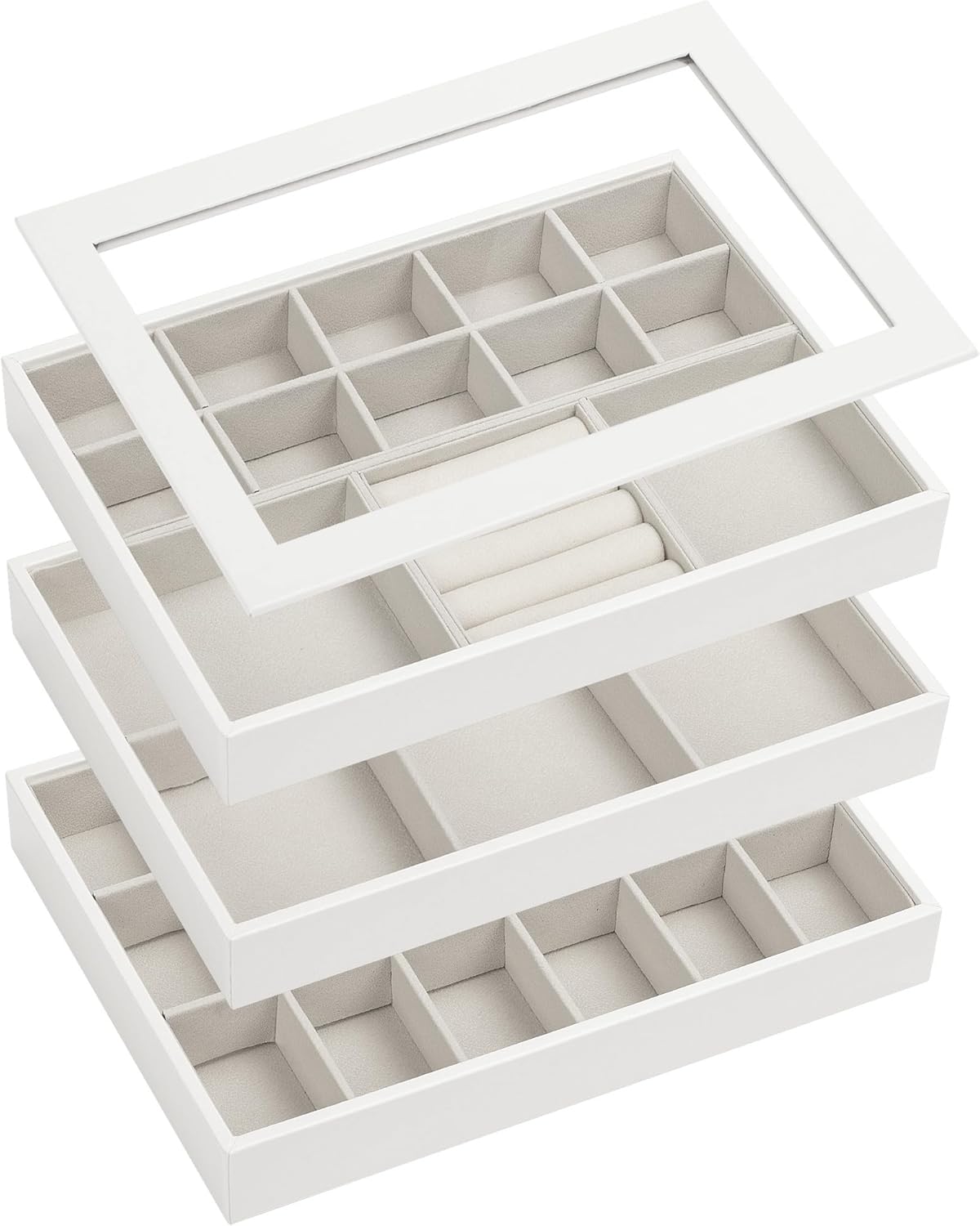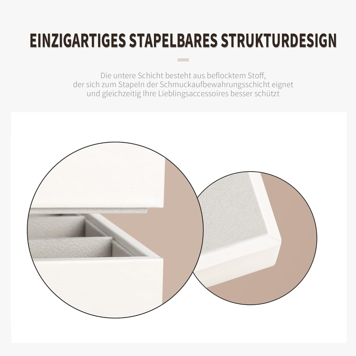 - Flexibler Einsatz: Mit einzigartigem Design kann er an einem Ort gestapelt oder in den Schrank gelegt werden, um alle Arten von wertvollem Schmuck flexibler zu lagern