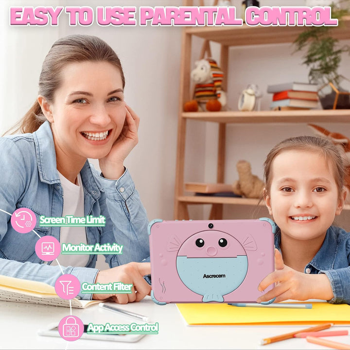 - [Kinder beschäftigt halten]: Auf dem Ascrecem Android kind tablet sind eine Reihe von Lernspielen und eine Reihe von Videos vorinstalliert. Sie können auch andere Lieblings-Apps für Kinder aus dem Google Play Store herunterladen, z. B. ABC mouse,