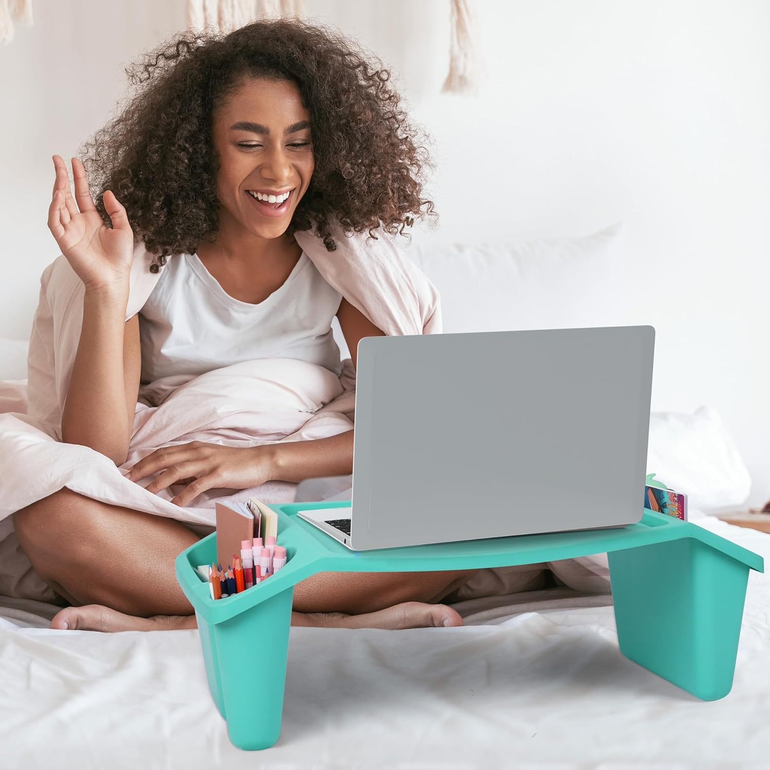 - HOCHWERTIGER KUNSTSTOFF: Dieser leichte Laptoptisch fürs Bett aus hochwertigem Kunststoff ist robust, leicht zu reinigen und hat keine scharfen Kanten; in den geräumigen Ablagefächern können Sie Utensilien, Schreibwaren, Bastelmaterial und vieles