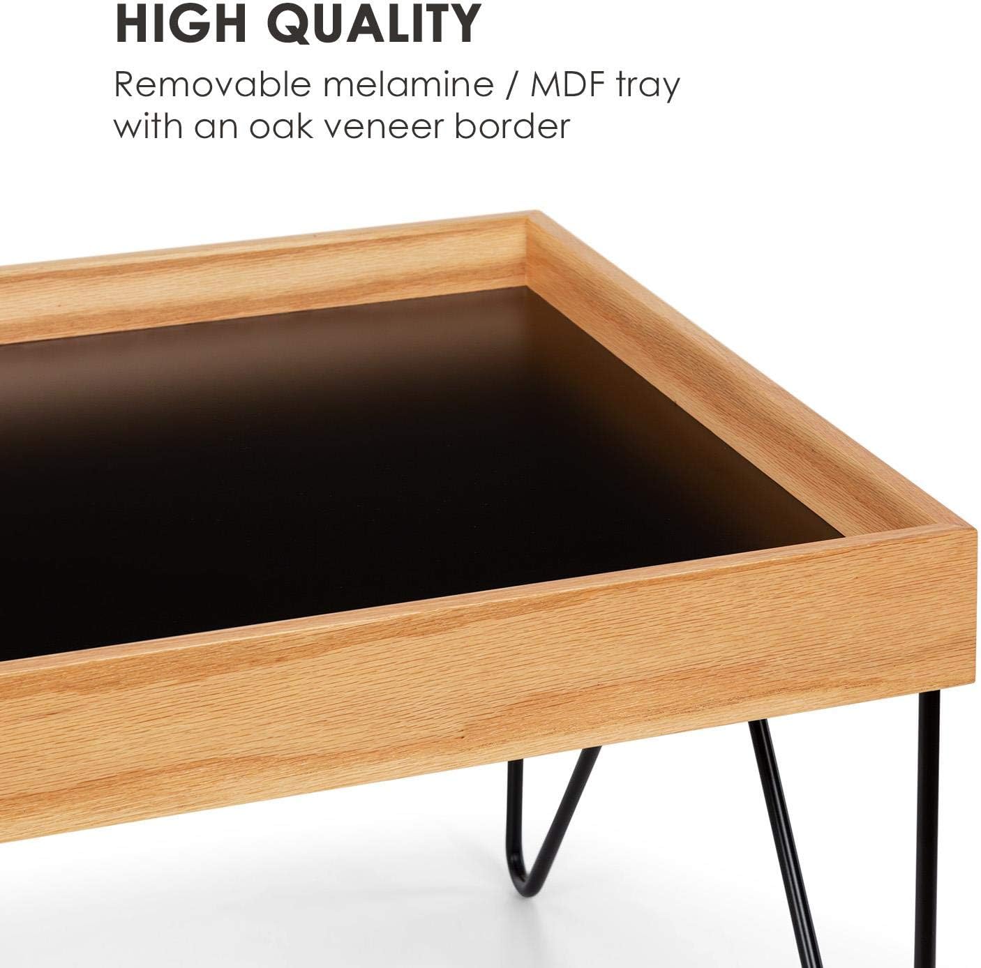 - Schlichte Eleganz: stilvoller Kaffeetisch im modernen Design | Hochwertig: abnehmbares Tablett aus Melamin/MDF mit einer Umrandung aus Eichenfurnier | Robust: stabiler Stahlrahmen für einen sicheren Stand