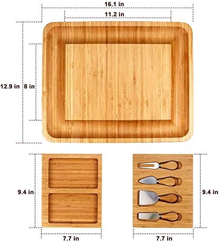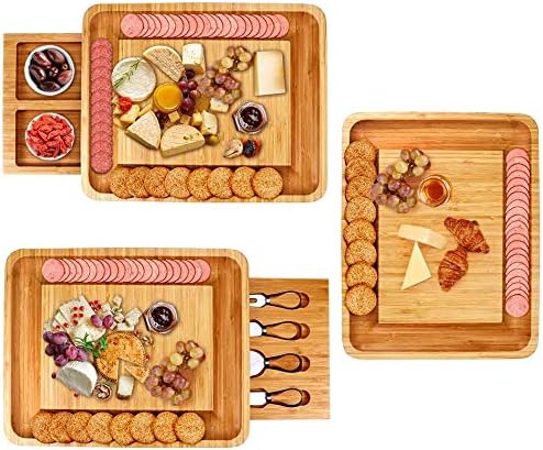 - 2 versteckte Schublade: Mit 2 geheimen Aufbewahrungsfächern unter dem Brett, die leicht zu greifen sind, ist das Käse-Serviertablett bequem zu tragen und behält ein elegantes Erscheinungsbild bei. Es ist eine perfekte Wahl für Sie, um es selbst oder