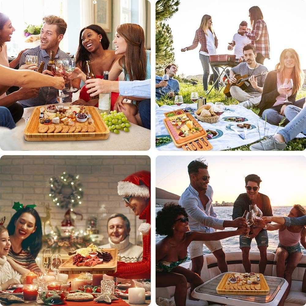 - Multifunktionales Schneidebrett: Mit Premium-Besteck aus Edelstahl und haltbarem, stabilem Brett bietet das Servierbrett-Set endlose Möglichkeiten, alle Arten von Lebensmitteln wie Gemüse, Obst, Brot und Fleisch in Scheiben zu schneiden. Mit einer