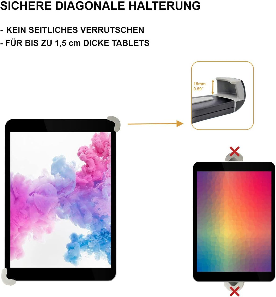 - SEHR STABIL - auch bei grossen Tablet's 9,5 bis 14,5 Zoll / EGAL OB MITTIG ODER EINSEITIG PLATZIERT