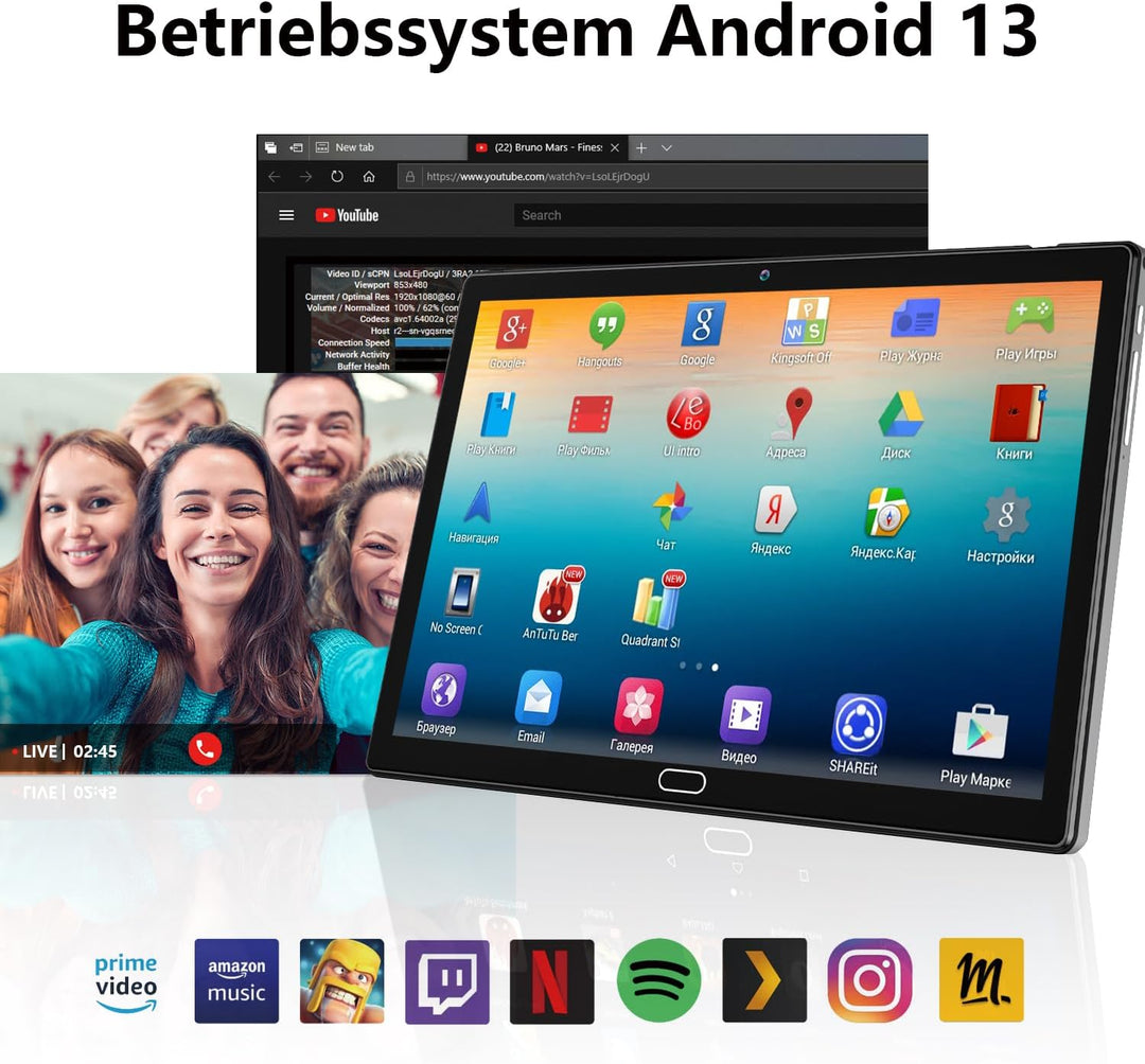 - đăAndroid Tablet + Google Gms Certifiedă Das Android Tablet ist mit einem leistungsstarken 1,6 Ghz Octa-Core-Prozessor ausgestattet, der das Multitasking beschleunigt und einen reibungslosen und stabilen Betrieb gewĂ€hrleistet, und ist Google Gms