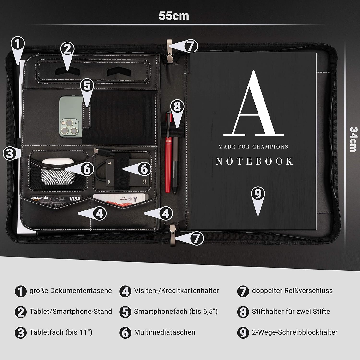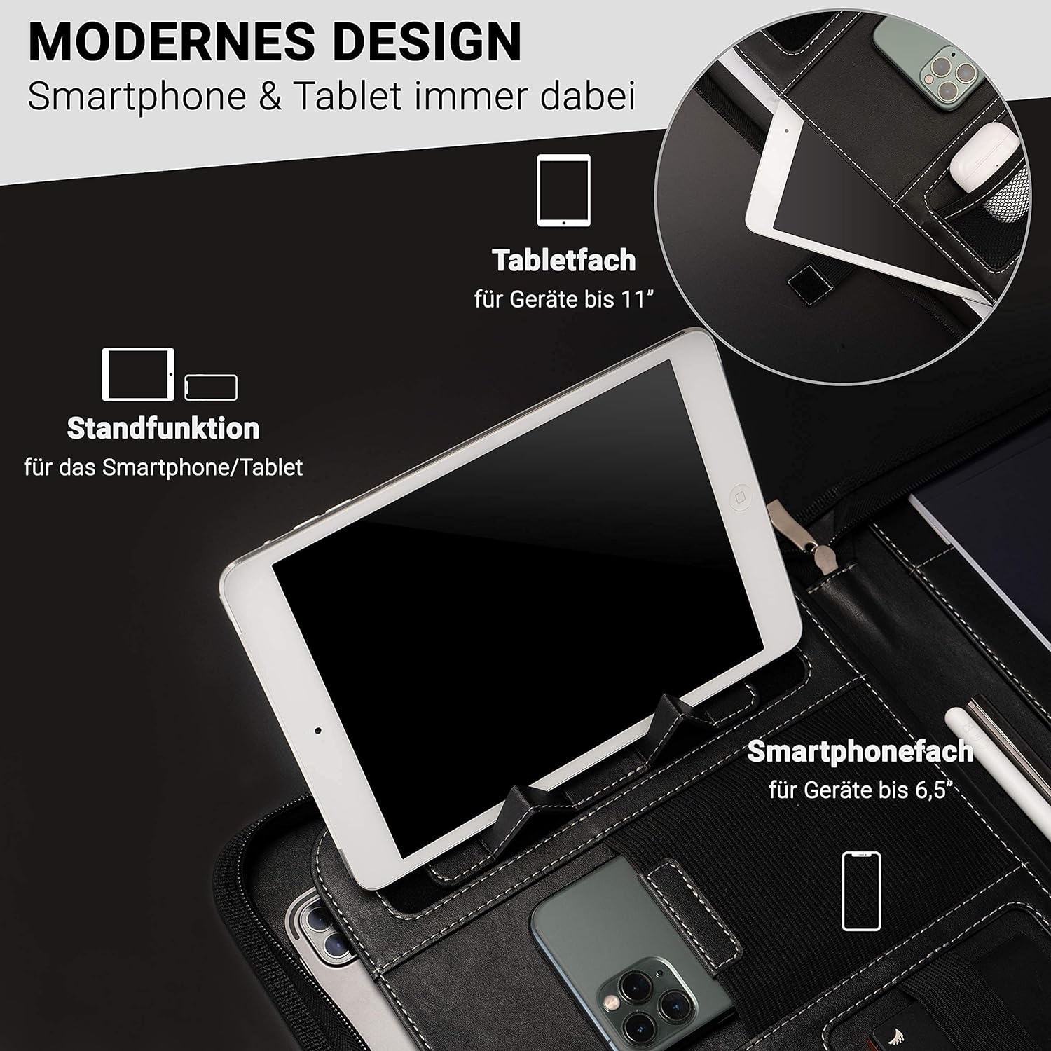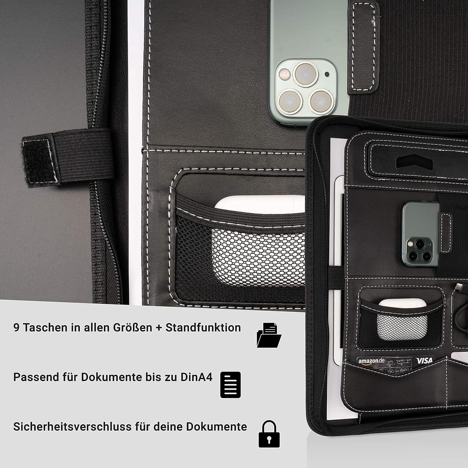 - SENSATIONELLES PLATZWUNDER - Du hast in dieser Businessmappe immer sofort einen Platz für all Deine Unterlagen, Schreibblöcke, Stifte, Karten, Smartphone bis 6,5", 13" Tablet, MacBook und vieles mehr