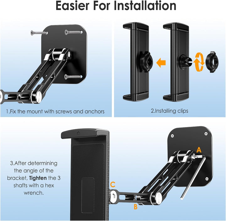- Universell: Die Aluminium-Tablet-Wandhalterung ist kompatibel mit 4,7-12,9-Zoll-Mobiltelefonen und Tablet-Geräten, wie iPad, iPad Pro, iPad Air, iPad Mini, iPhone 11/12/13/14/15/ProMax, Samsung Galaxy, Surface, Surface pro, Amazon Fire, Kindle Fire HD,