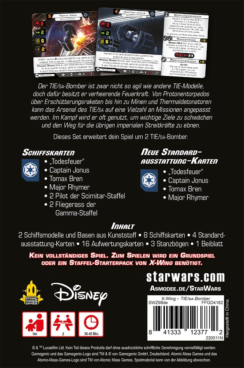 Atomic Mass Games | Star Wars: X-Wing 2. Edition – TIE/SA-Bomber | Erweiterung | Tabletop | 2 Spiele