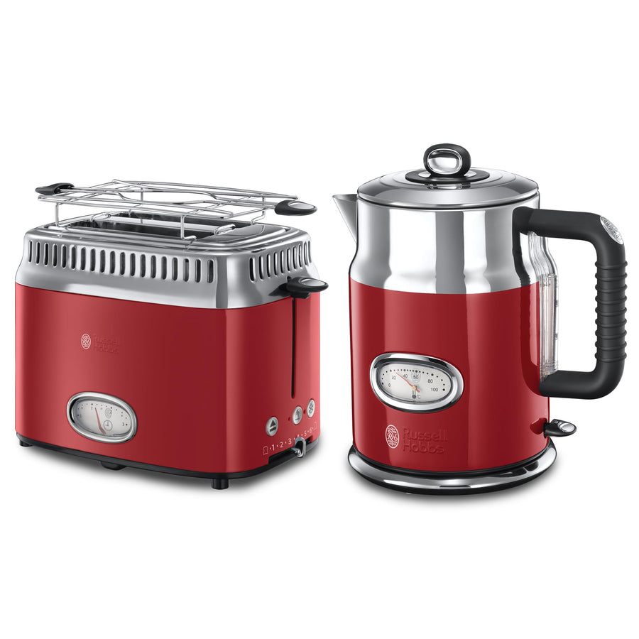 Russell Hobbs Toaster + Russell Hobbs Wasserkocher Retro rot [Energieklasse A] [Energieklasse A] [En