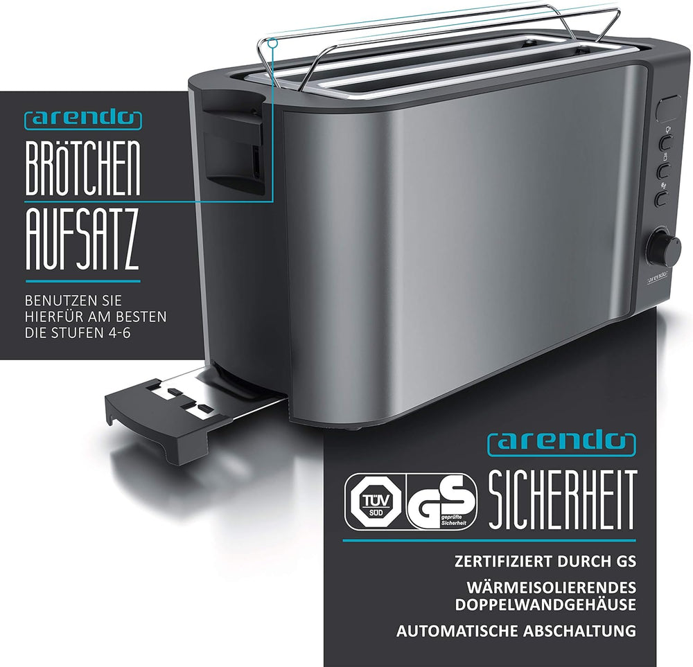 Arendo - Edelstahl Toaster Langschlitz 4 Scheiben - Defrost Funktion - wärmeisolierendes Gehäuse - m