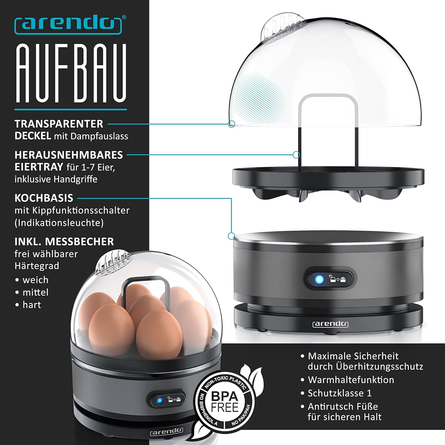 - Der 400W starke SEVENCOOK Eierkocher im raffinierten Runddesign lässt sich individuell in den Stufen „weich“, „mittel“ und „hart“ einstellen