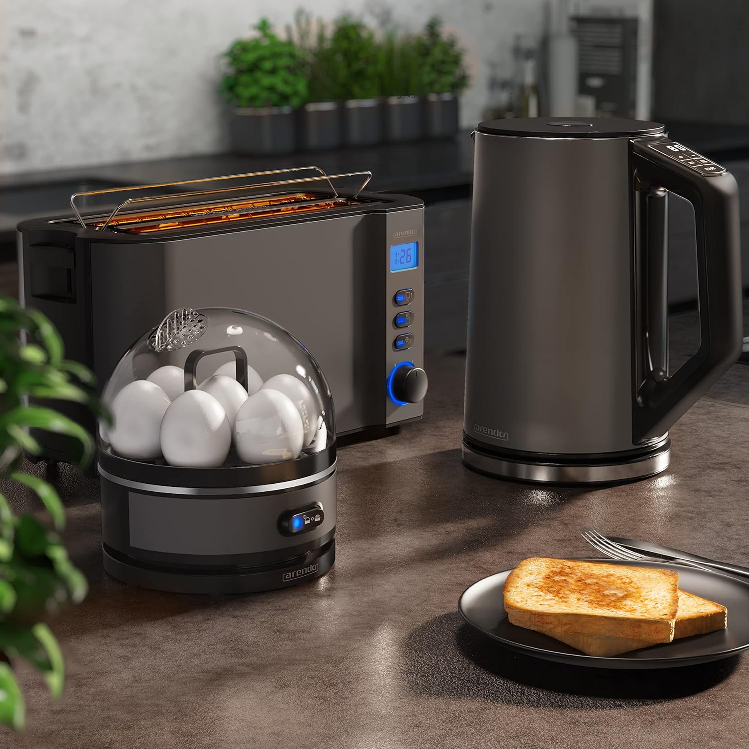 - Arendo 3-teiliges Frühstücksset bestehend aus Edelstahl Wasserkocher, 4 Scheiben Toaster & 7er Eierkocher in Grau