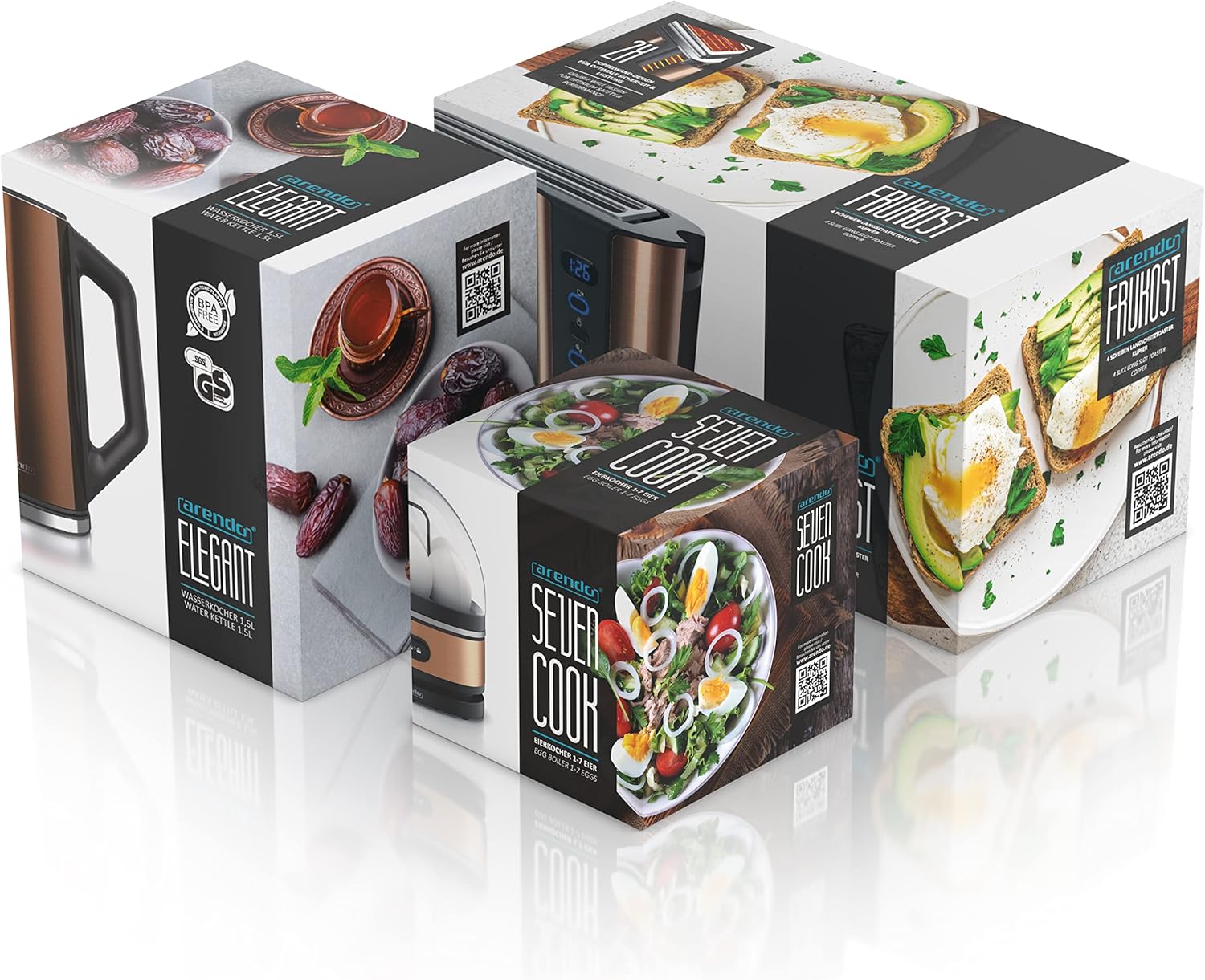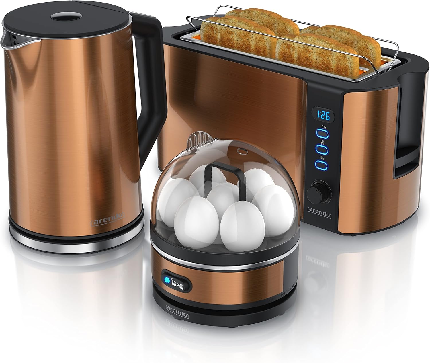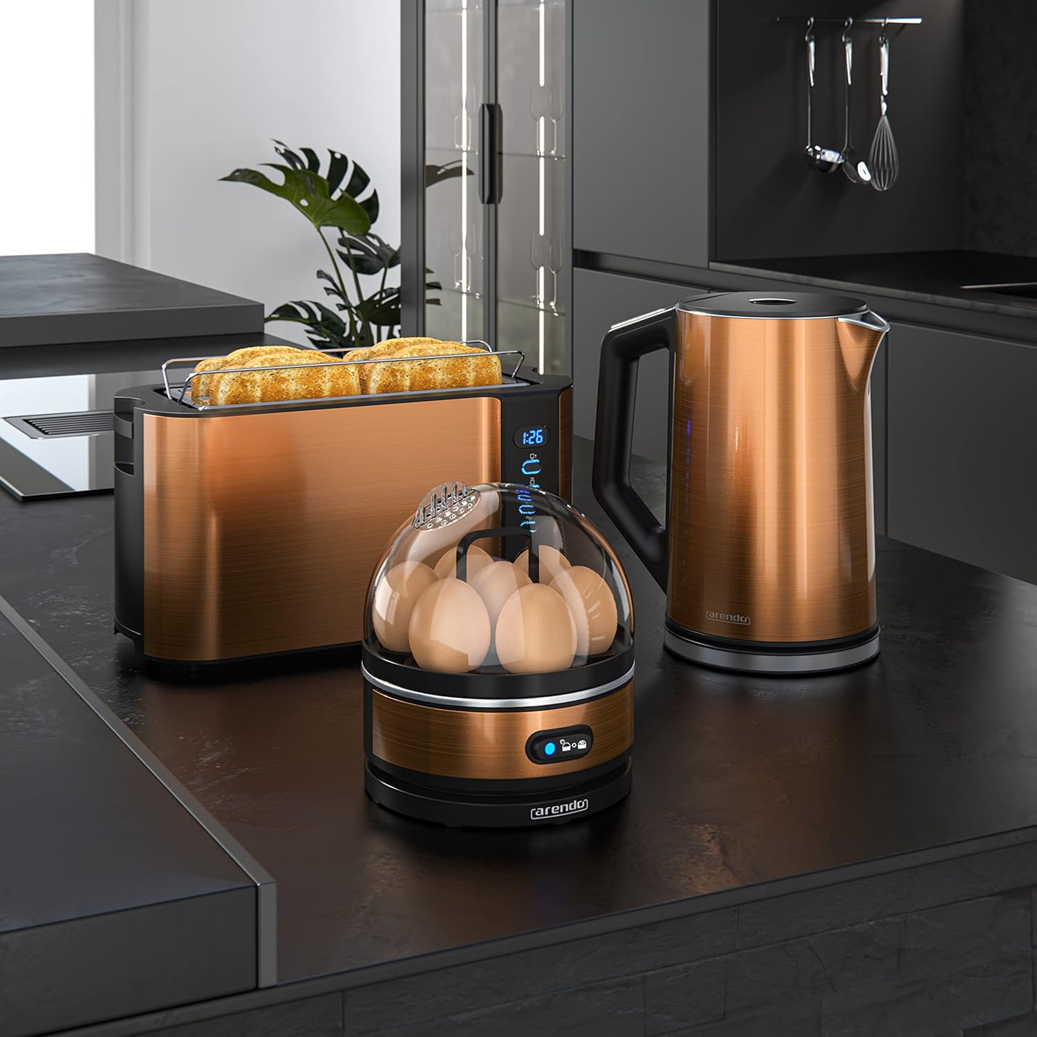 - Arendo 3-teiliges Frühstücksset bestehend aus Edelstahl Wasserkocher, 4 Scheiben Toaster & 7er Eierkocher in Kupfer