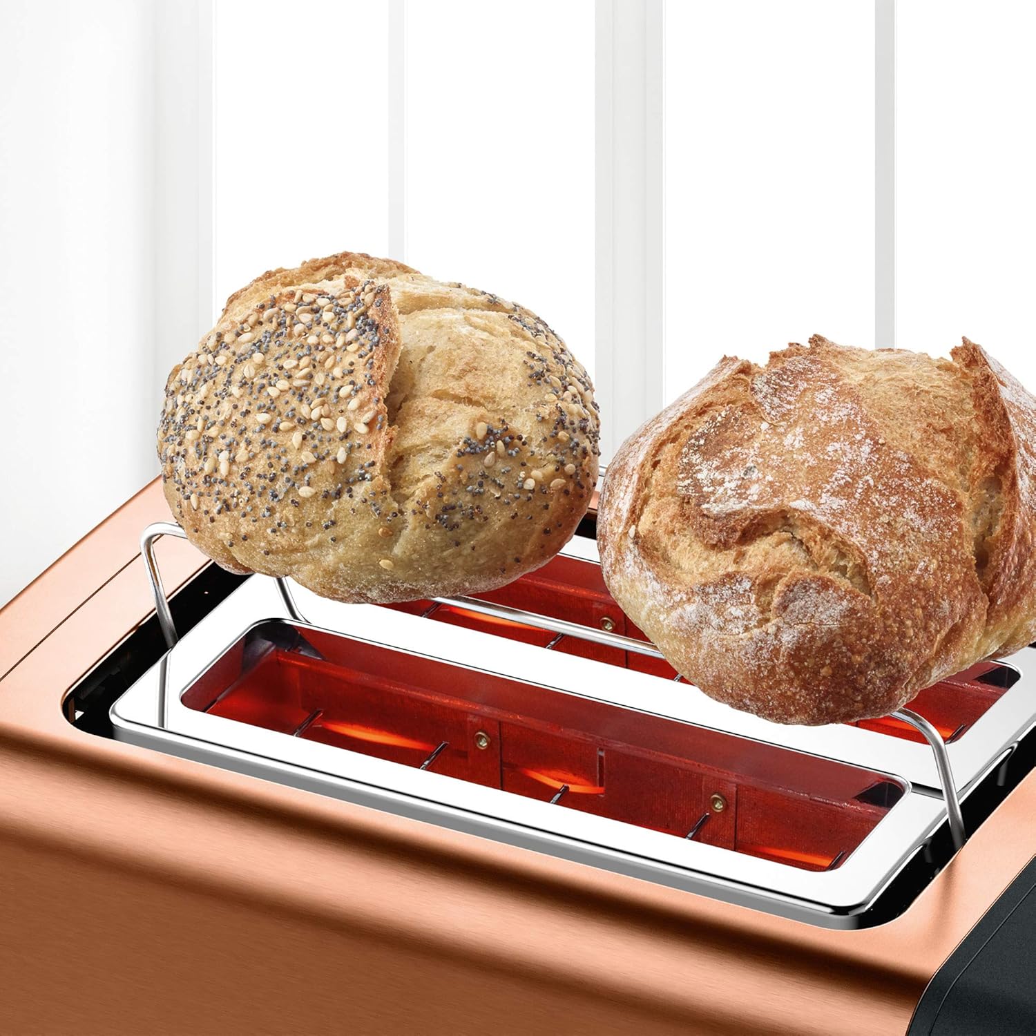 - Gleichmässiges Röstbild durch automatische Brotzentrierung