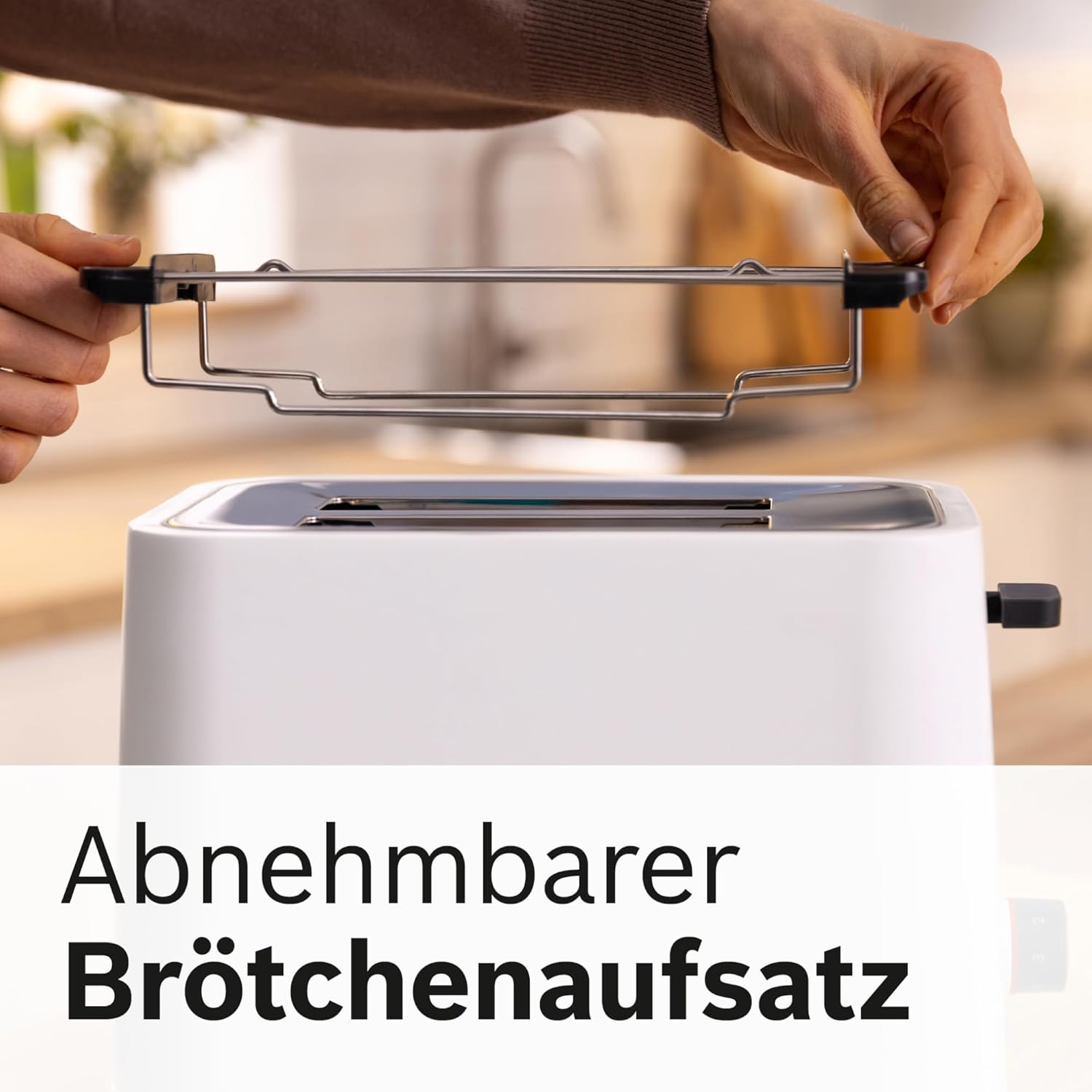 - Auftau- und Aufwärmfunktion: taut deinen Toast auf und röstet ihn knusprig