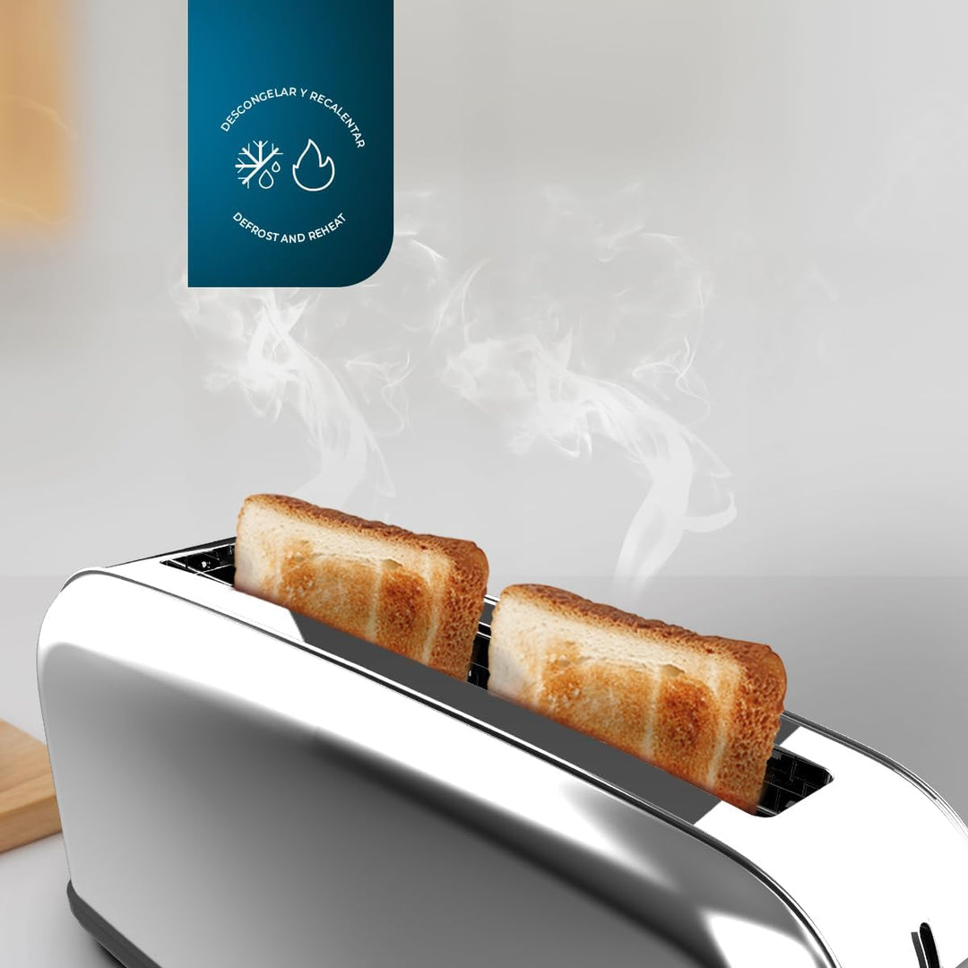 - Der Toaster verfügt über mehrere praktische Funktionen wie das selbstzentrierende System für gleichmässiges Bräunen, 7 Bräunungspositionen und die Abbrechen-Funktion, um den Bräunungsprozess jederzeit zu unterbrechen.