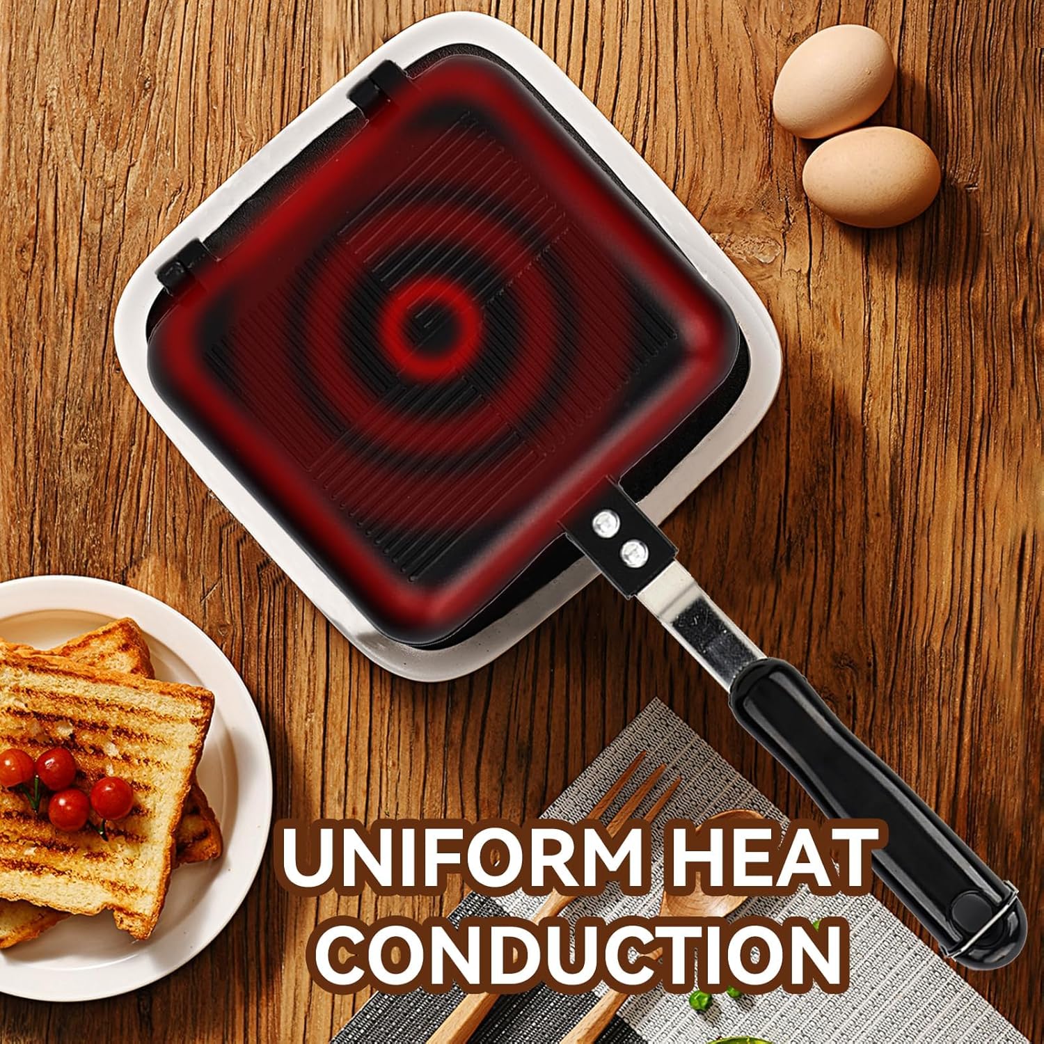 - Die Antihaftbeschichtung verhindert das Anhaften von Lebensmitteln. Decken Sie einfach den Deckel ab, um zwei Sandwiches gleichzeitig zuzubereiten, zum Frühstück, Mittag- oder Abendessen.