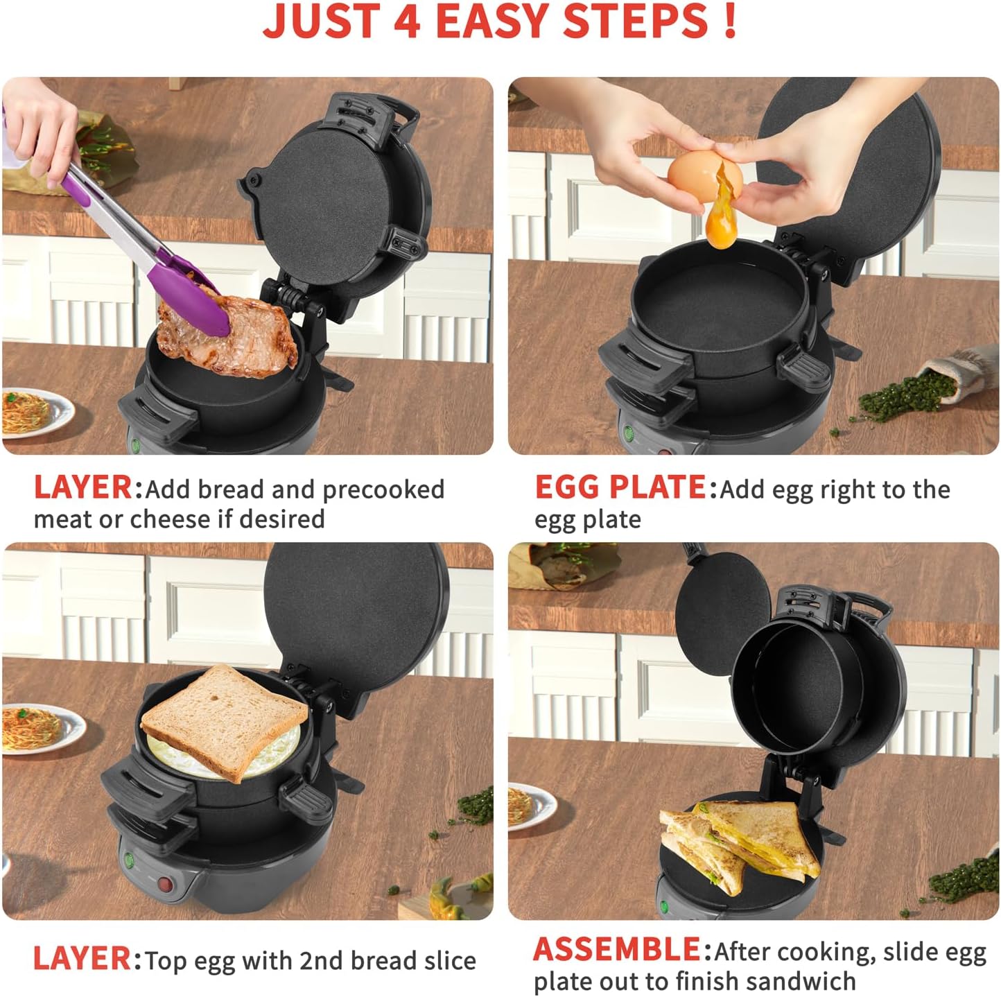 - 【Schnell und Einfach】Ermöglicht die Zubereitung von 1 reichhaltigem Sandwich/Hamburger in nur wenigen Minuten. Verwenden Sie Ihre eigenen frischen Zutaten, darunter Eier, Käse und vieles mehr, und bereiten Sie köstliche Frühstücksbrötchen