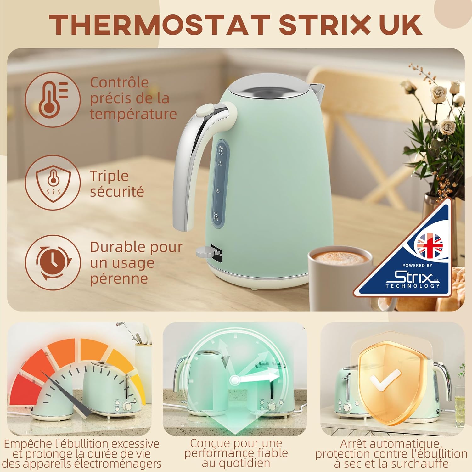 - THERMOSTAT STRIX DU ROYAUME-UNI : Dotée d'un thermostat Strix du Royaume-Uni de confiance, notre bouilloire électrique garantit un contrôle précis de la température et une sécurité optimale. Elle dispose de fonctionnalités essentielles telles que