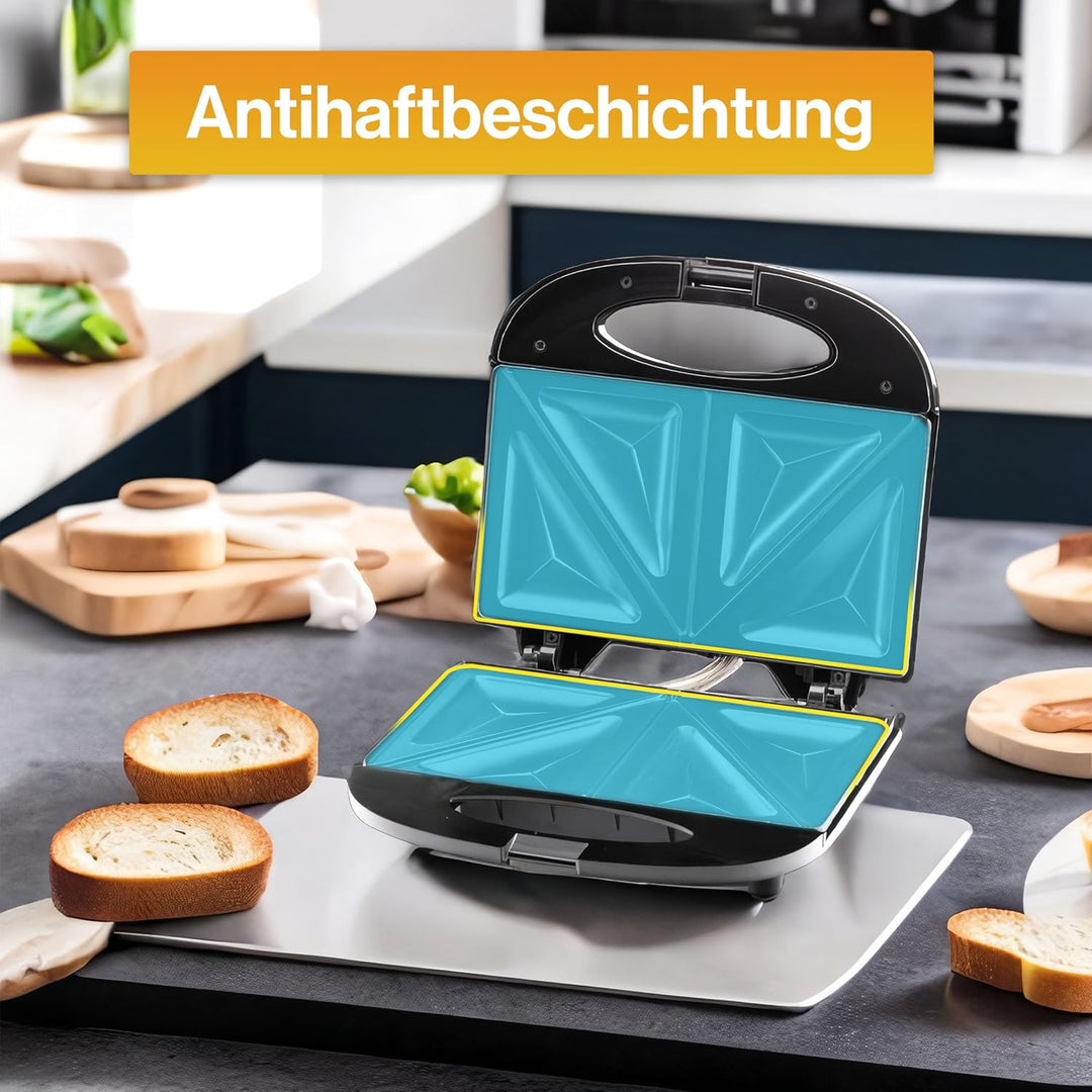 - Antihaftbeschichtung: Zwei Platten aus Antihaftmaterial sorgen für eine mühelose Entnahme der Sandwiches und erleichtern die Reinigung, sodass kein Essen an den Platten haften bleibt.