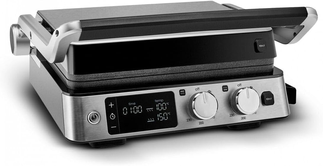 - Unabhängige Plattensteuerung: Erzielen Sie Kochpräzision mit separat steuerbaren oberen und unteren Platten, die auf unterschiedliche Temperaturen einstellbar sind, und optimieren Sie mit der stufenweisen Temperatureinstellung für jedes Mal perfekte