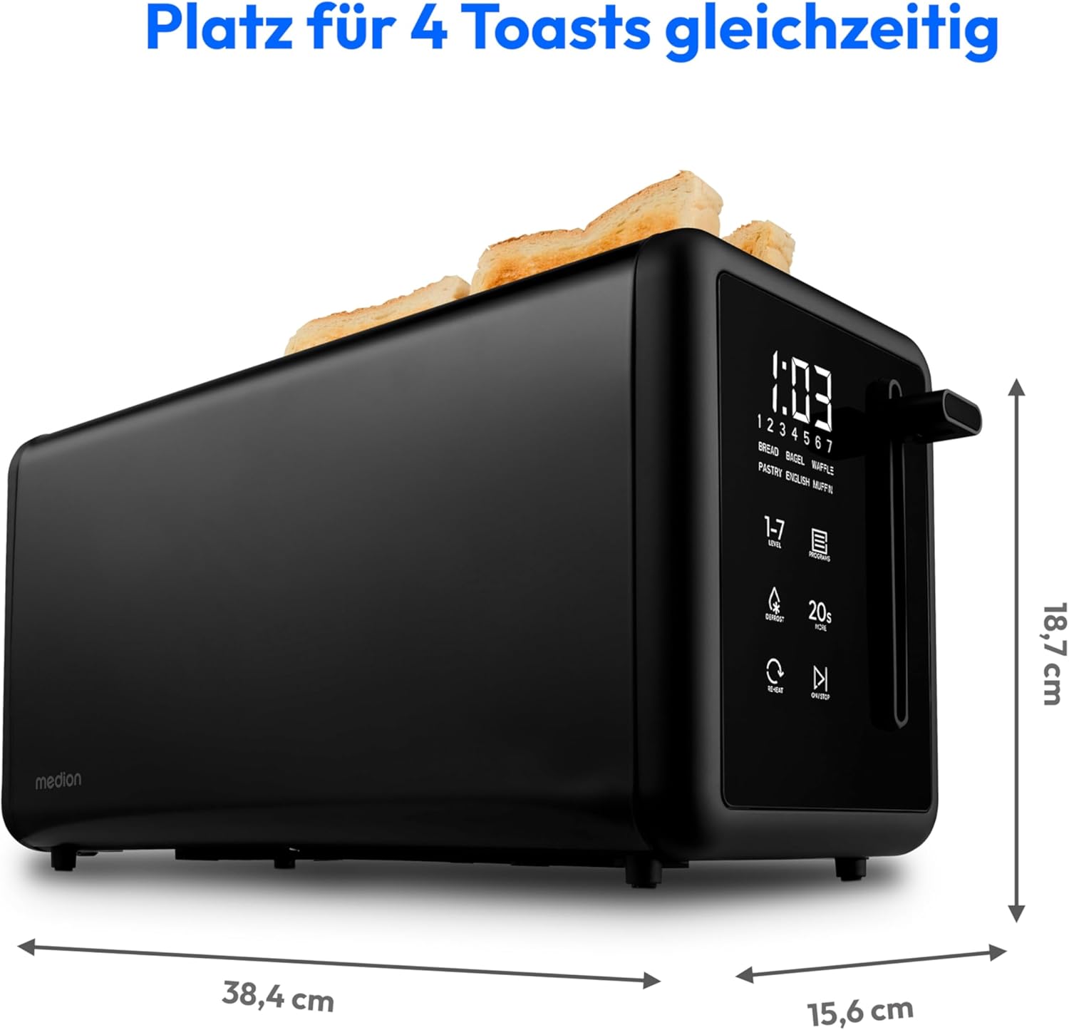 - STARKE 1.450‑WATT‑LEISTUNG: Ideal für den Familienstart in den Tag – toastet dank extra‑langer Toastschlitze bis zu 4 Scheiben gleichzeitig, für schnelle Ergebnisse.